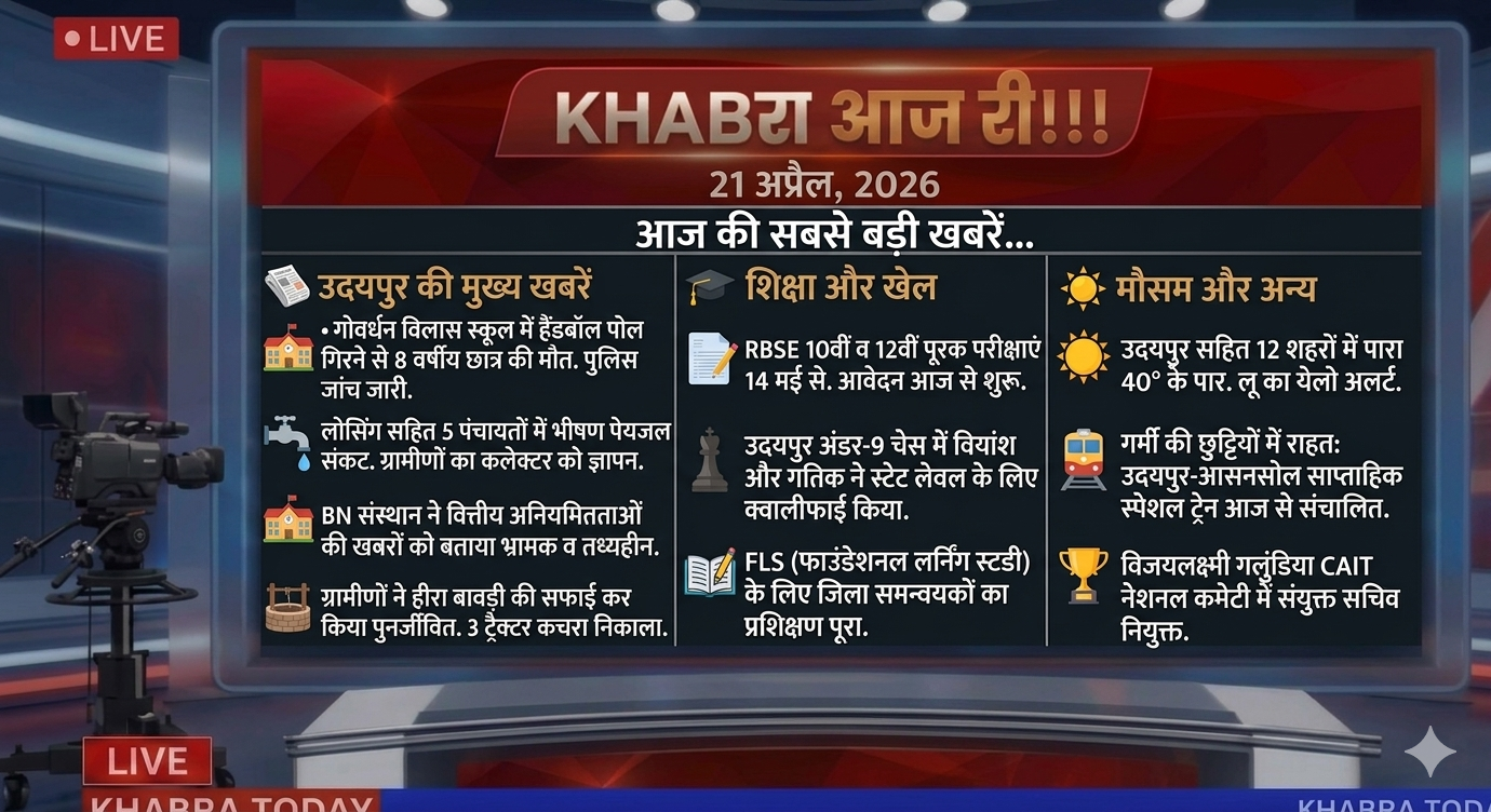 🗞️ उदयपुर की मुख्य खबरें (Udaipur Top News)