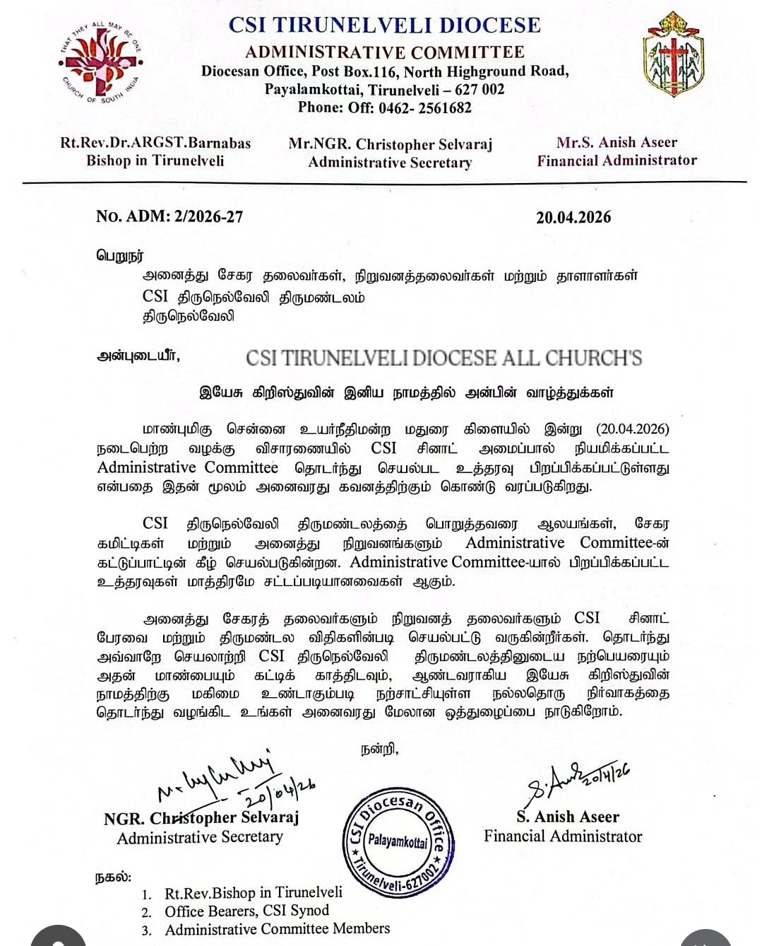 .IN TIRUNELVELI DIOCESE MADRAS HIGH COURT MADURAI BENCH APPOINMENT SYNOD ADMINISTRATIVE COMMITTEE