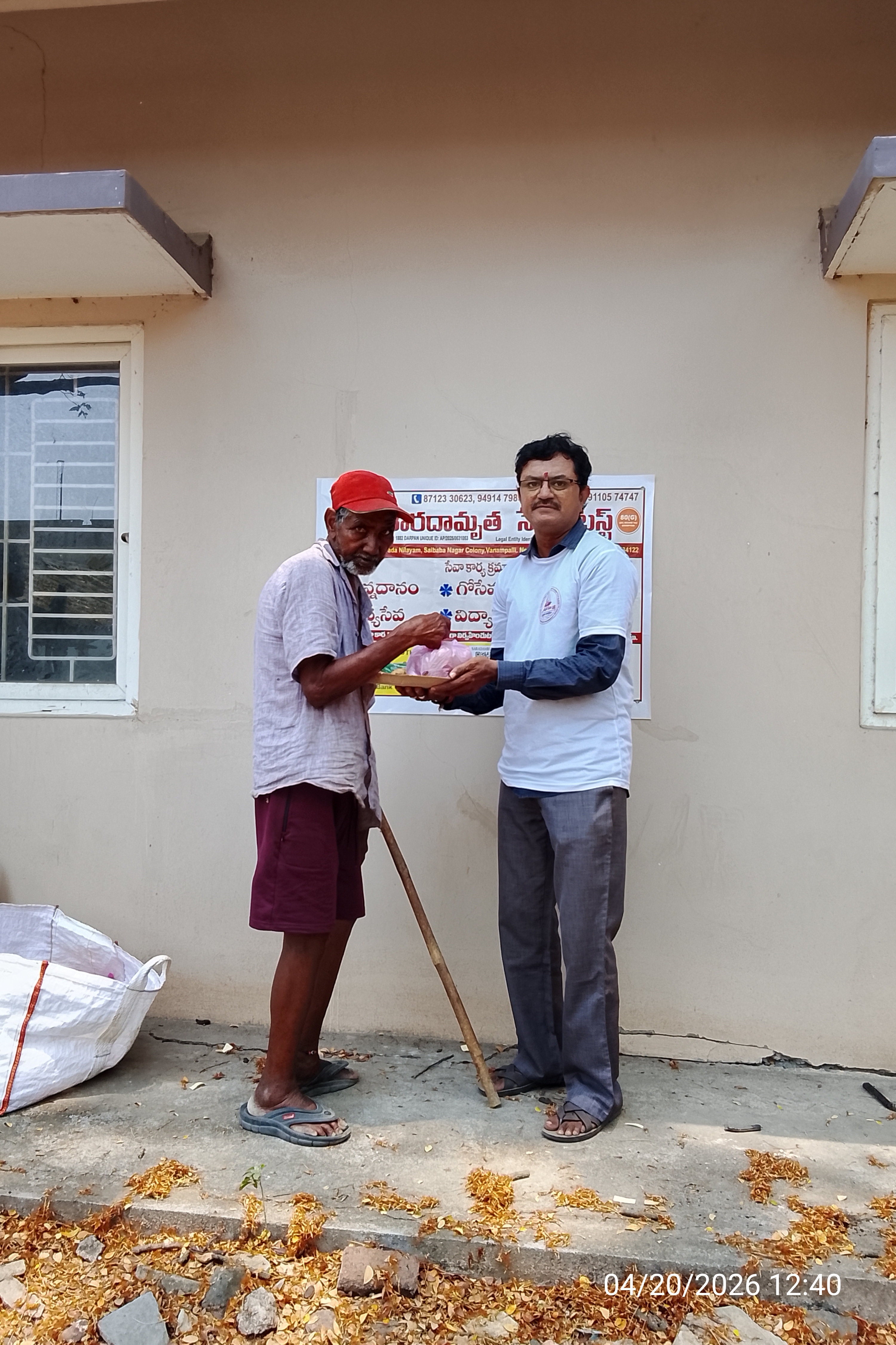 మారుటేరు, ఏప్రిల్ 20: అక్షయ తృతీయ పర్వదినాన్ని పురస్కరించుకుని శారదామృత సేవా ట్రస్ట్ ఆధ్వర్యంలో పలు సేవా కార్యక్రమాలను ఈ రోజు ఉదయం నుండి నిర్వహించారు. ఈ కార్యక్రమంలో భాగంగా ట్రస్ట్ వ్యవస్థాపకులు మరియు చైర్మన్ డాక్టర్ వి. సత్యహరి గారి పర్యవేక్షణలో మారుటేరు మరియు పరిసర ప్రాంతాలలో ఉన్న పేదలకు మరియు దివ్యాంగులకు అన్నప్రసాద వితరణ చేపట్టారు.