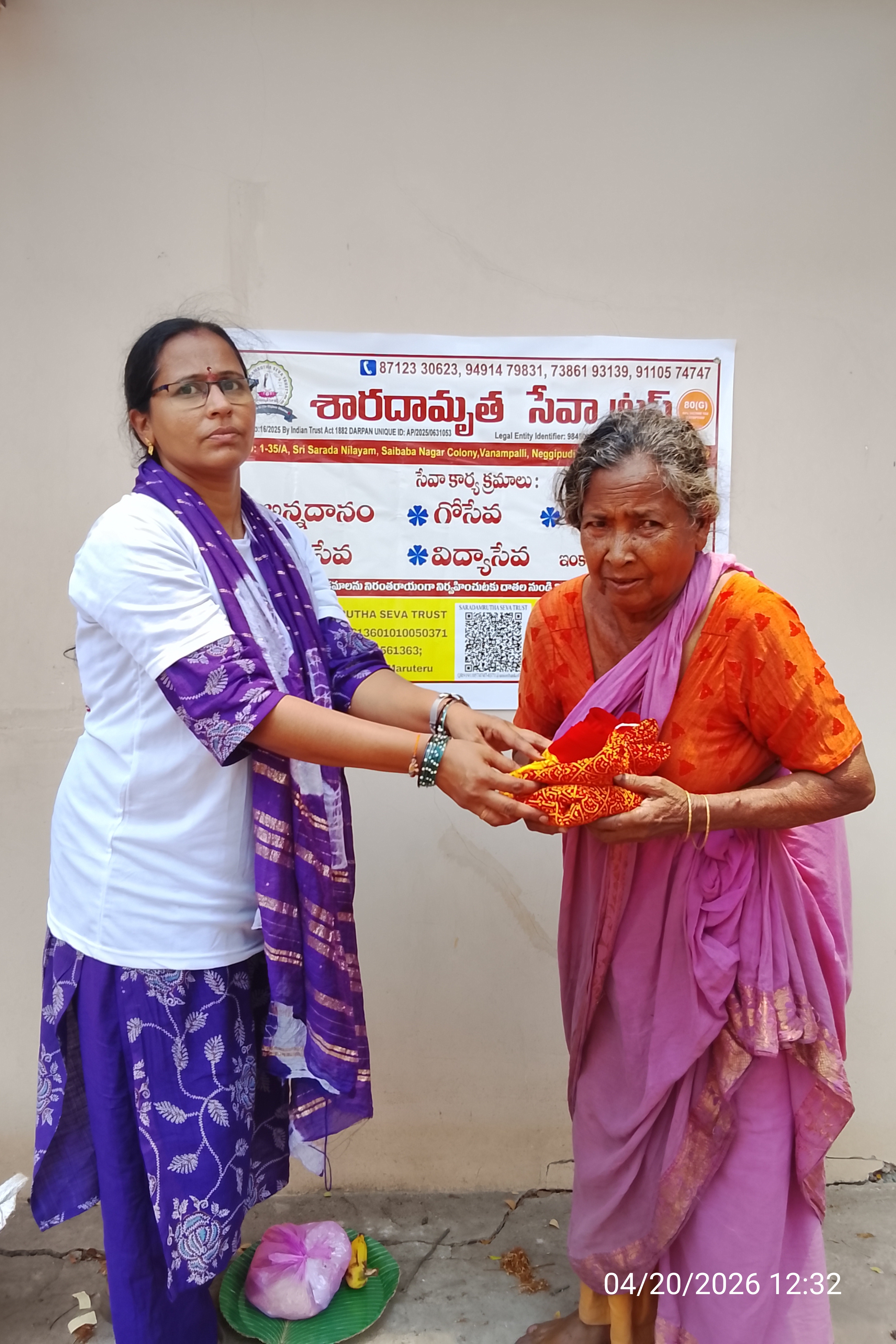 ఈ సందర్భంగా మహిళలకు వస్త్రదానం (చీరల పంపిణీ) చేయగా, గోవులకు కూరగాయలను ప్రత్యేక ఆహారంగా అందించారు. కార్యక్రమంలో పాల్గొన్న ఆశ్రిత వర్గాల ముఖాల్లో చిరునవ్వులు చూసి నిర్వాహకులు తృప్తి చెందారు.