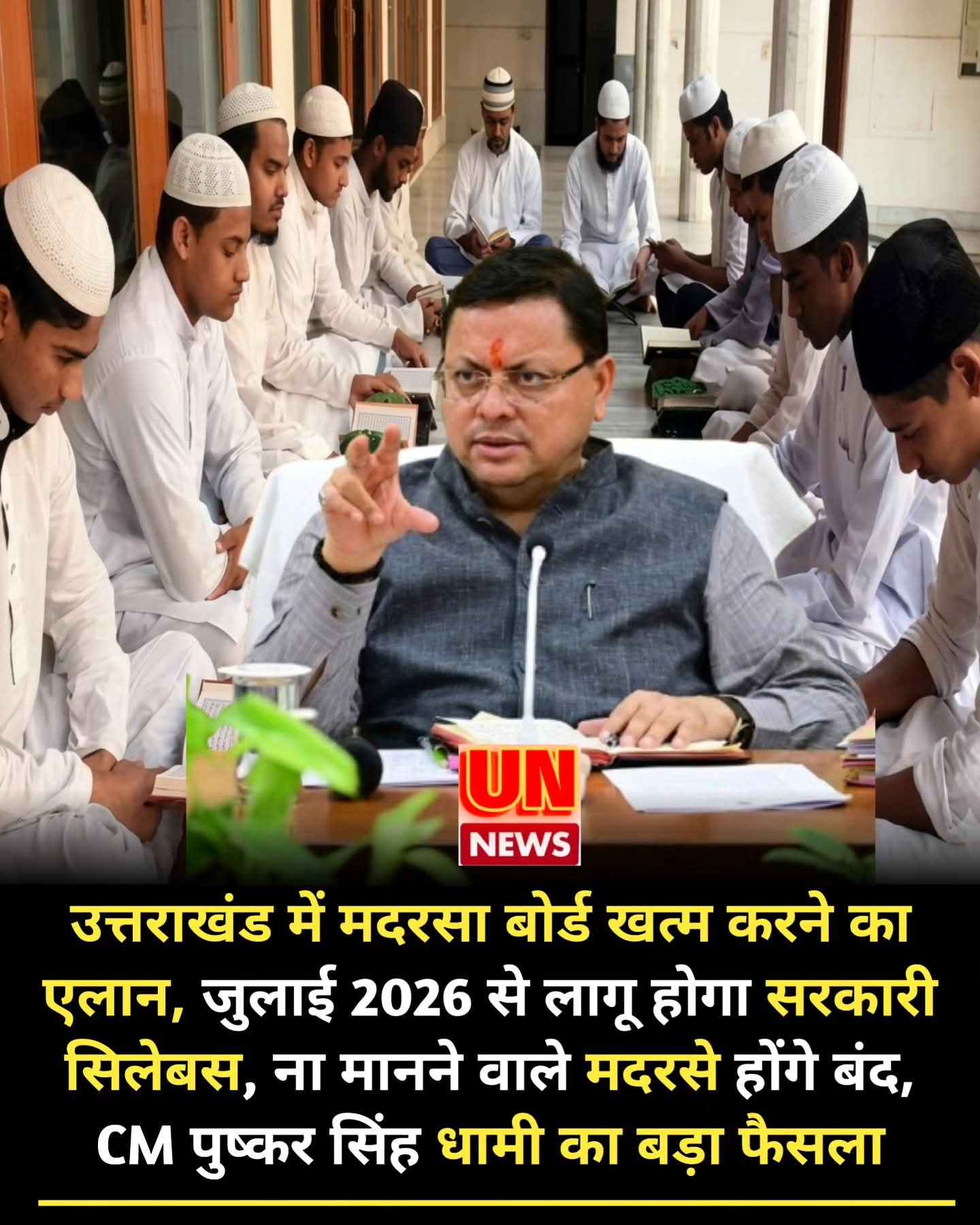मुख्यमंत्री पुष्कर सिंह धामी ने उत्तराखंड मदरसा बोर्ड को खत्म करने का ऐतिहासिक ऐलान किया है. हरिद्वार