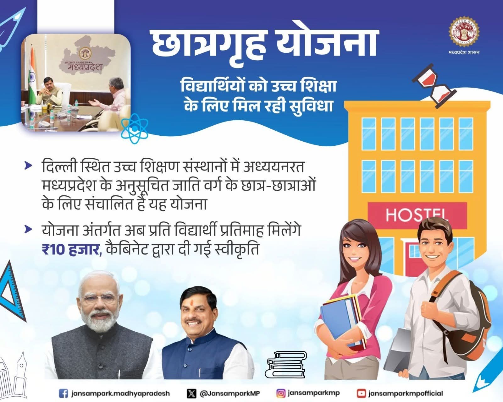 🏘️दिल्ली स्थित उच्च शिक्षण संस्थानों में अध्ययनरत मध्यप्रदेश के अनुसूचित जाति वर्ग के छात्र -छात्राओं के लिए संचालित है यह योजना