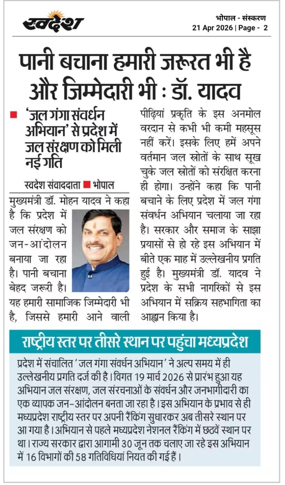 पानी बचाना हमारी जरूरत भी है और जिम्मेदारी भी : मुख्यमंत्री डॉ. मोहन यादव