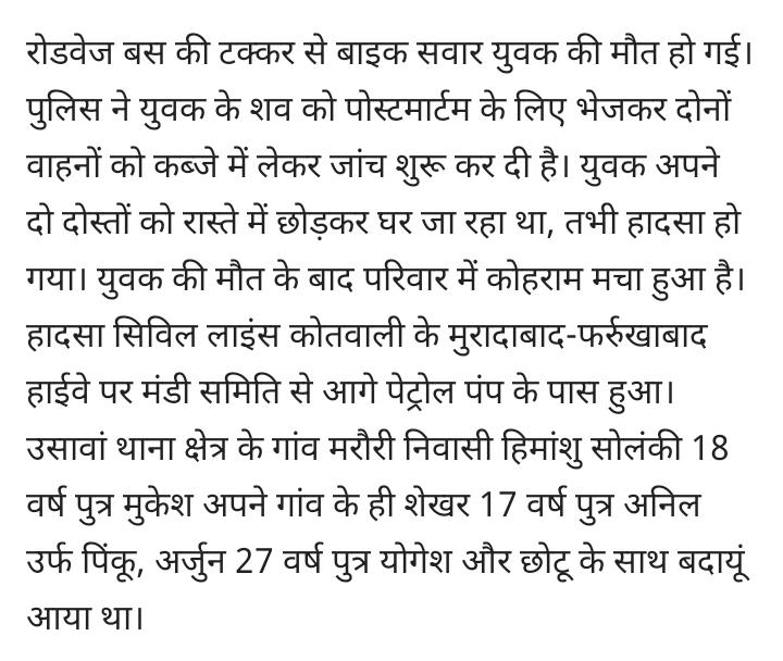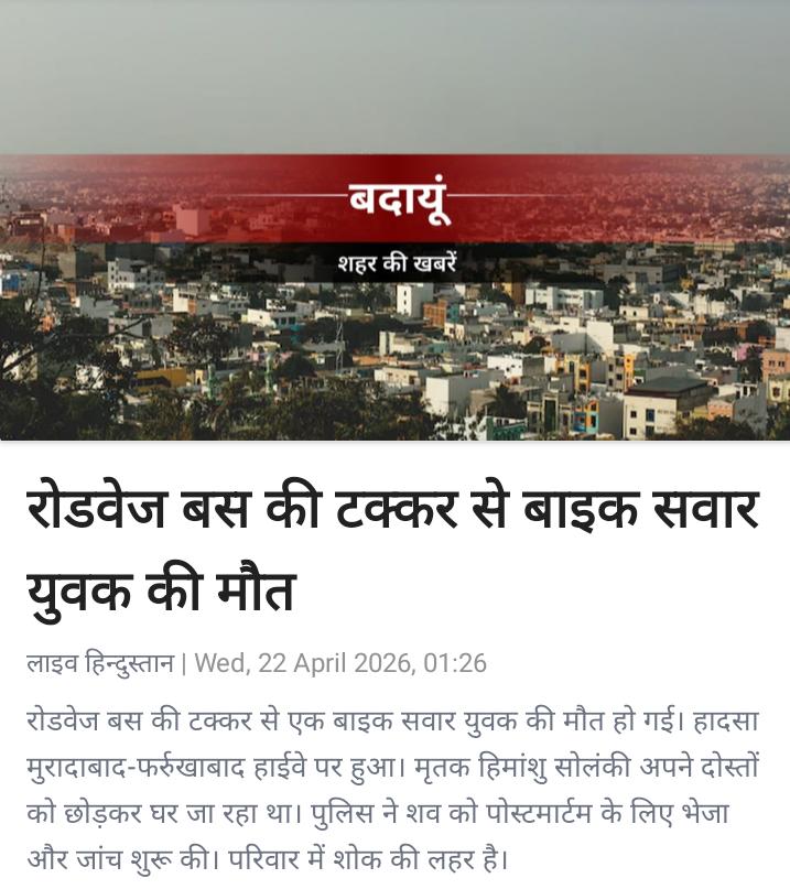 Yah. Ghatna jila badaun me muradabad farrukhabad highway ki h is ghatna se parivar me kohram mcha hua h