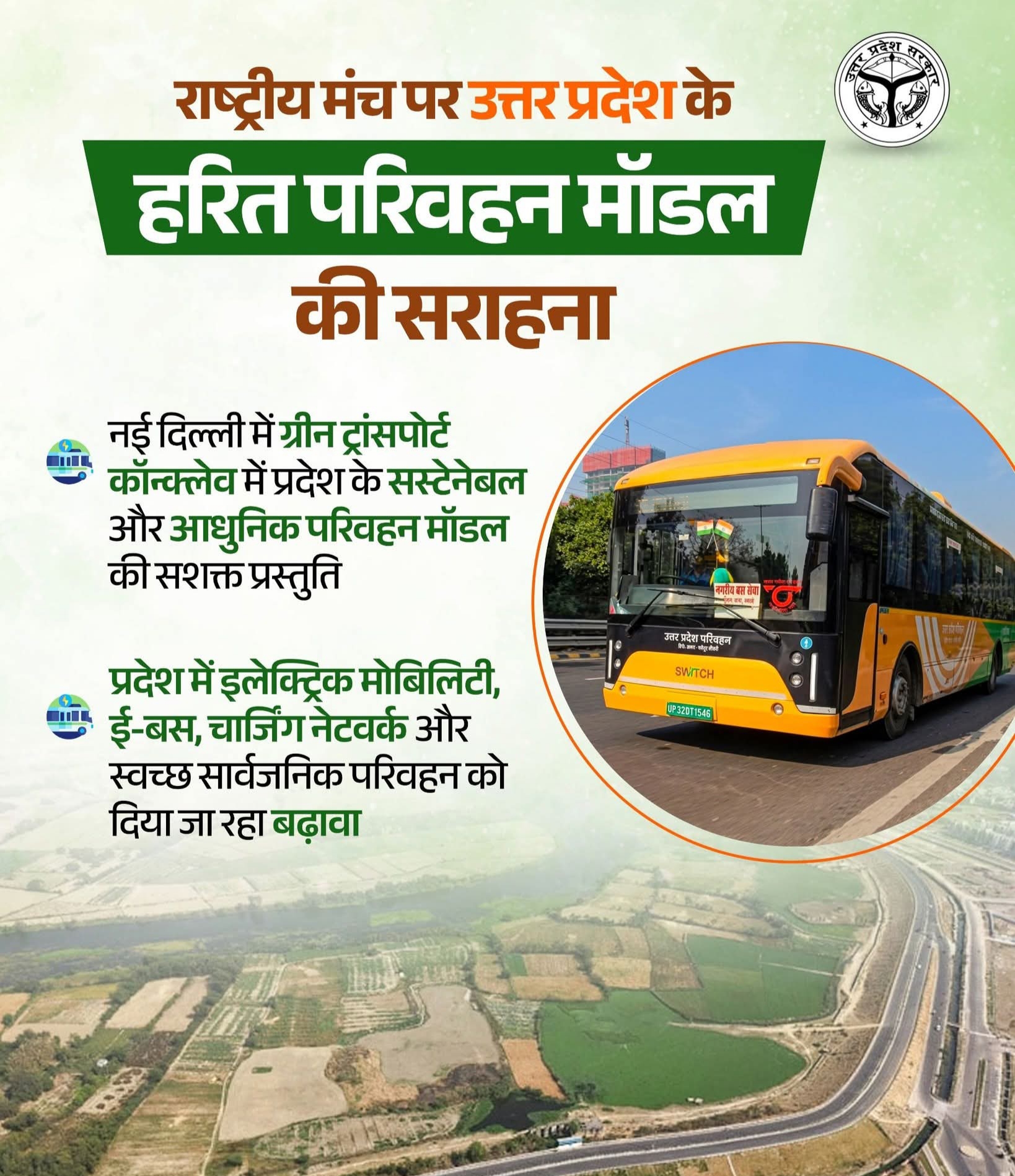 नई दिल्ली में आयोजित दो दिवसीय ग्रीन ट्रांसपोर्ट कॉन्क्लेव में उत्तर प्रदेश के सतत परिवहन मॉडल ने सभी का ध्यान आकर्षित किया। इस दौरान स्वच्छ ऊर्जा आधारित ग्रीन मोबिलिटी, आधुनिक लॉजिस्टिक्स नेटवर्क तथा भविष्य उन्मुख अवसंरचना विकास की व्यापक रणनीति को प्रभावशाली ढंग से प्रस्तुत किया गया। उत्तर प्रदेश के हरित परिवहन मॉडल को देशभर के विशेषज्ञों एवं प्रतिभागियों द्वारा सराहा गया, जो प्रदेश की प्रगतिशील सोच और सतत विकास के प्रति मजबूत प्रतिबद्धता को दर्शाता है।