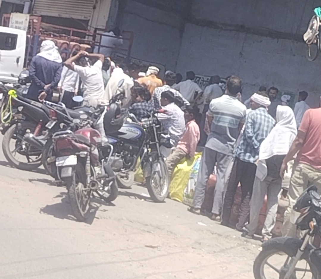 गैस की कमी के करण छबड़ा में लाइन लगाते हुए