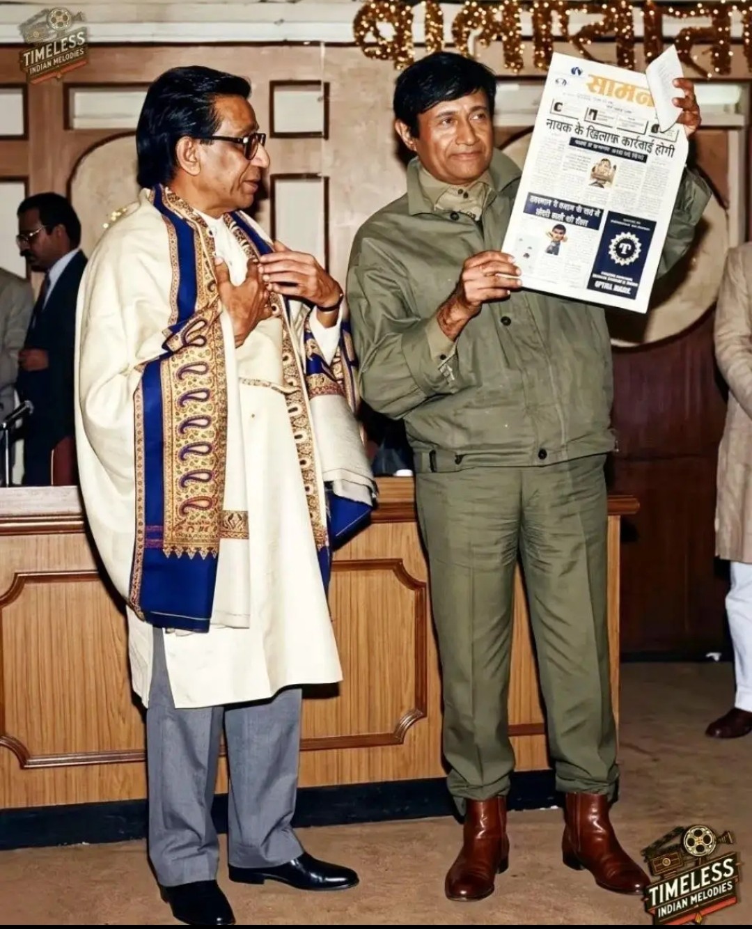 Dev Anand with Balasaheb Thackeray. And that copy of Saamana in hand.