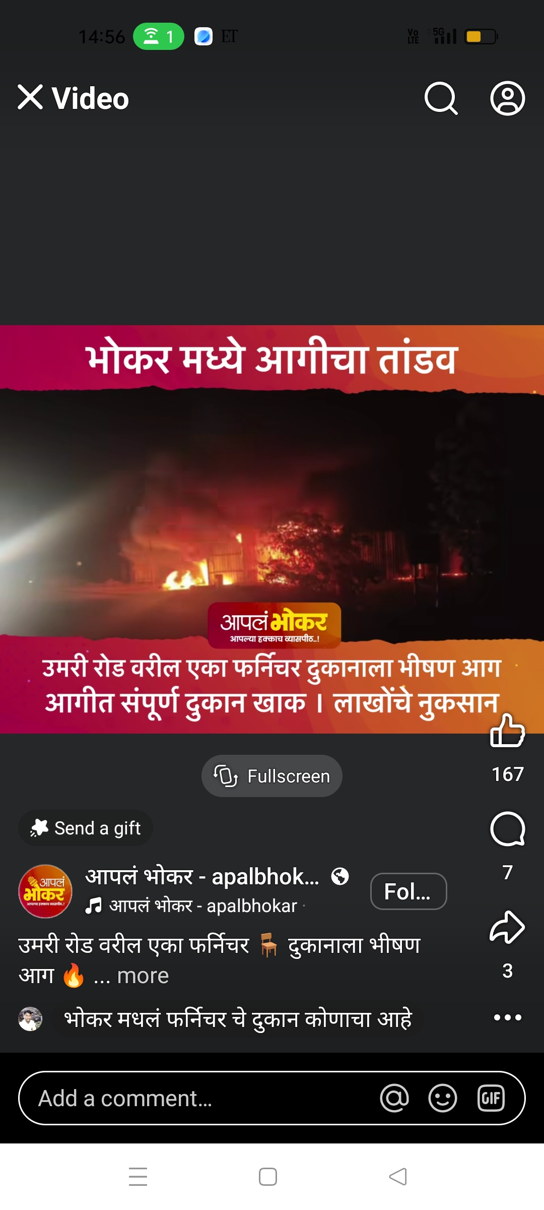 भोकर मध्ये एका फर्निचरच्या दुकानाला आग आगीमध्ये लाखोचे फर्निचर जळून खाक