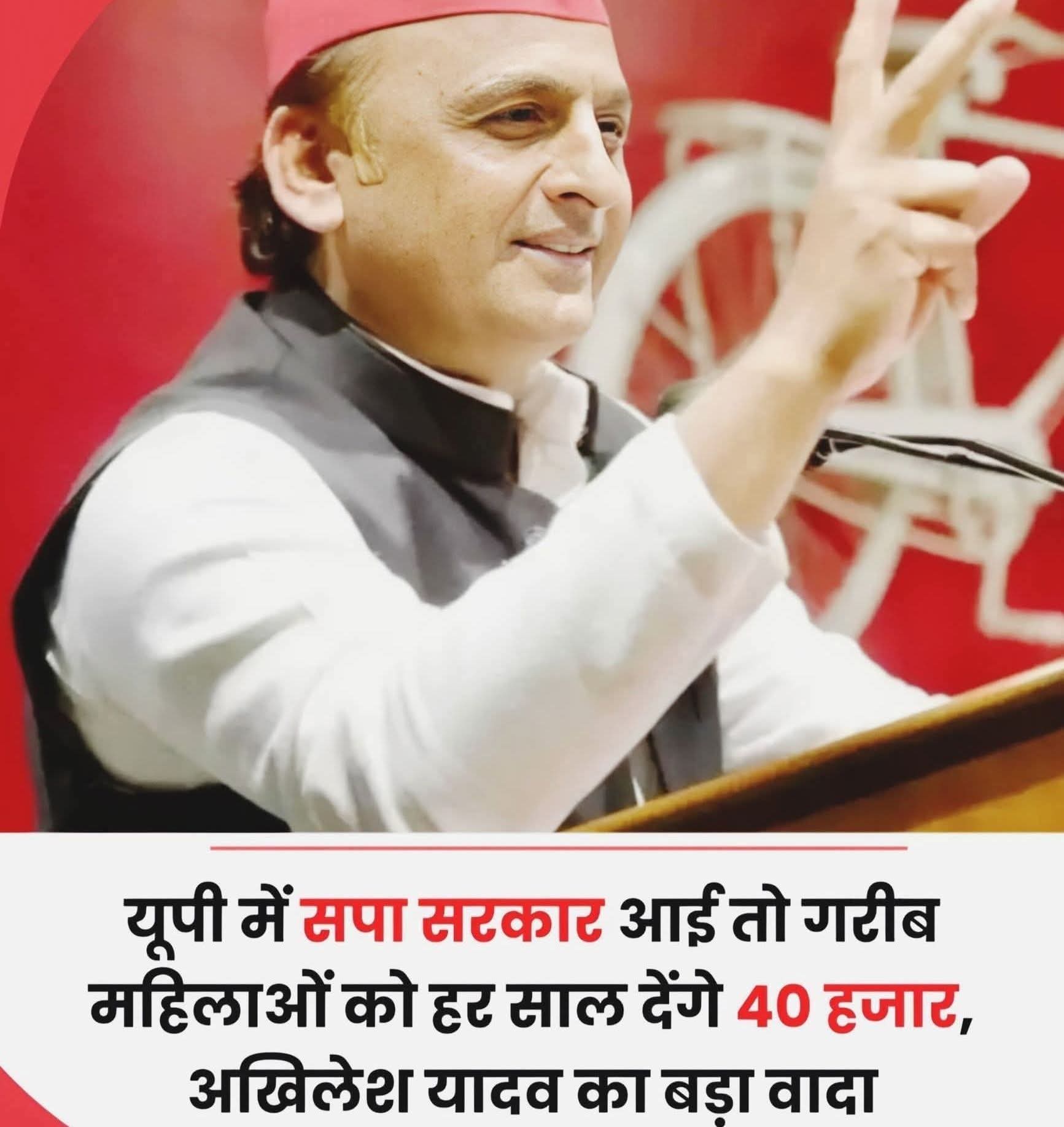 पूर्व मुख्यमंत्री उत्तरप्रदेश अखिलेश यादव का बड़ा ऐलान 2027 में सपा की सरकार बनी तो सभी विद्युत उपभोक्ताओं को 300 यूनिट बिजली मुफ्त और महिलाओं को देंगे 40 हजार पेंशन।
