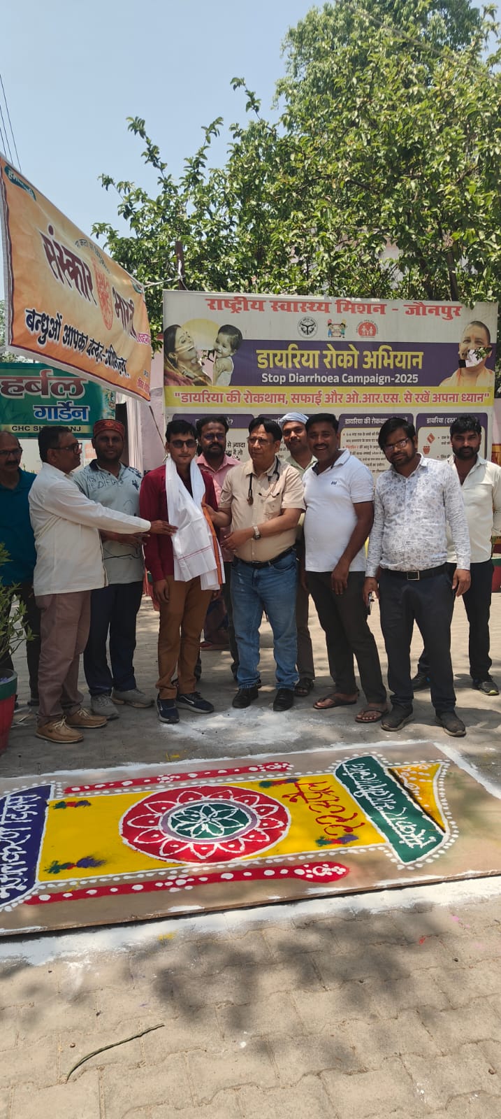 संस्था के कलाकार संदीप विश्वकर्मा और संजीव जायसवाल ने मिलकर इस सुंदर रंगोली का निर्माण किया। कार्यक्रम के दौरान अस्पताल अधीक्षक डॉ. रफीक फारूकी और डॉ. अभिषेक रावत ने कलाकारों को अंगवस्त्र भेंट कर सम्मानित किया।