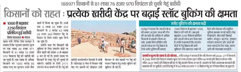 188971 किसानों से की जा चुकी है 81 लाख 76 हजार 970 क्विंटल गेहूं की खरीदी