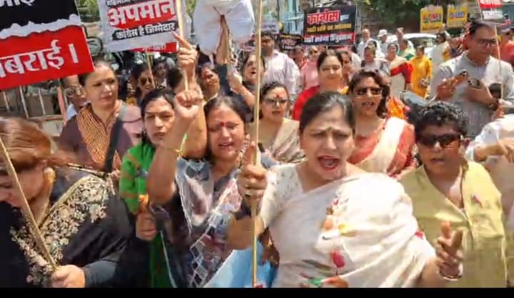 प्रदर्शन के दौरान कार्यकर्ताओं ने Rahul Gandhi, Priyanka Gandhi, Akhilesh Yadav और Mamata Banerjee के पुतले फूंके। इस दौरान नारी शक्ति की एकजुटता दिखाते हुए अखिलेश यादव के पोस्टर को पैरों से कुचलकर विरोध जताया गया।
