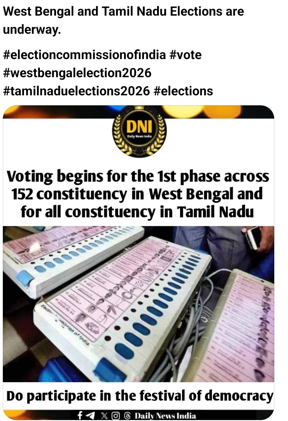 ପ୍ରଥମ ଫେଜ୍ ରେ 152ଟି ଆସନ ପାଇଁ ପଶ୍ଚିମ ବଙ୍ଗ ଓ ତାମିଲନାଡୁ ରେ ଭୋଟ ଜାରି ରହିଥିବା ବେଳେ, ସକାଳ 7 ଟା ରେ ଭୋଟ ଦାନ ଜାରି ରହିଛି।