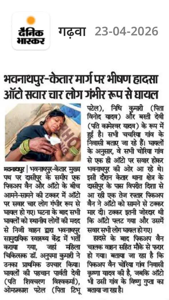 भवनाथपुर-केतार मार्ग पर भीषण सड़क दुर्घटना: ऑटो सवार चार लोग गंभीर रूप से घायल