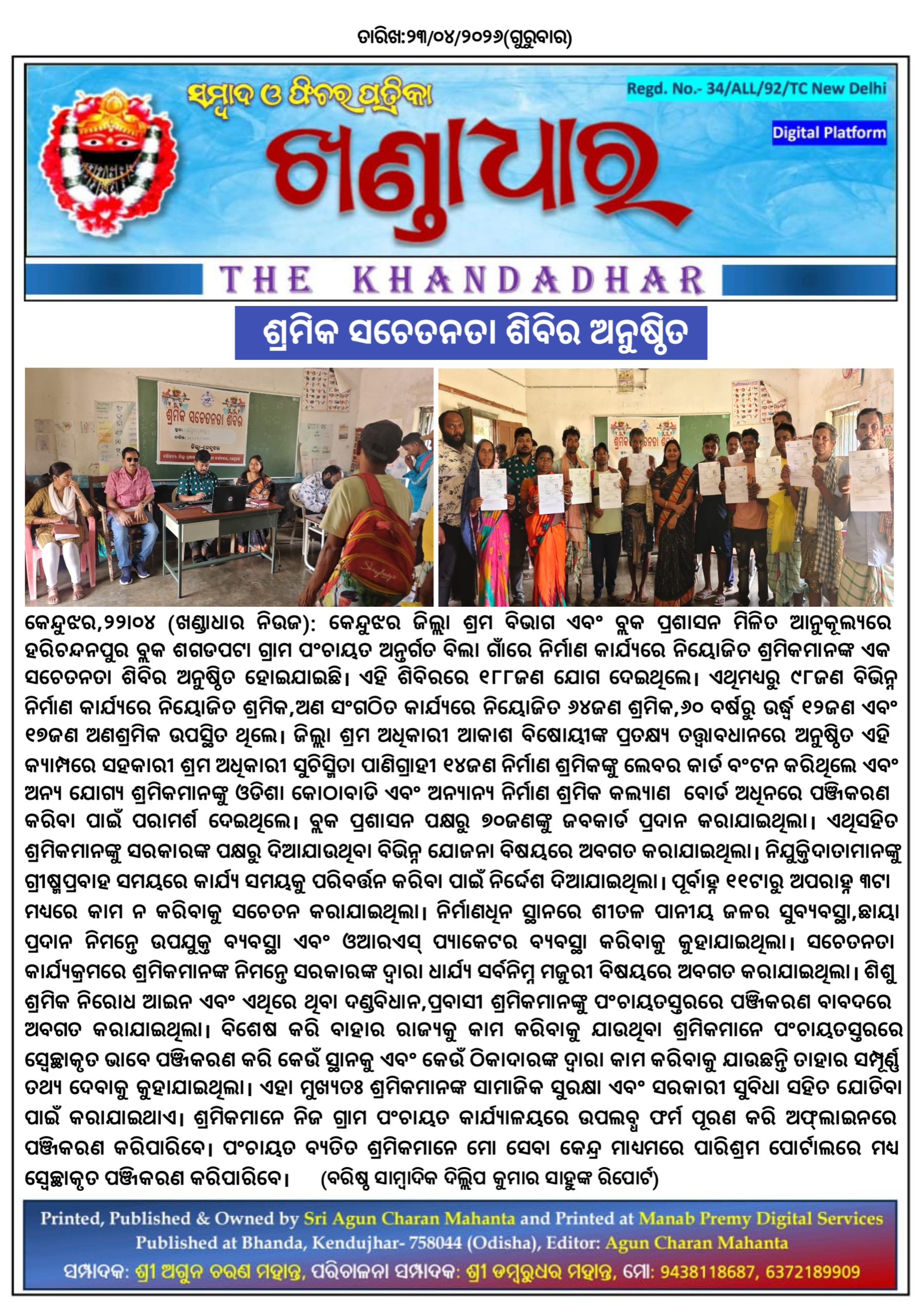 ଶ୍ରମିକ ସଚେତନତା ଶିବିର ଅନୁଷ୍ଠିତ।