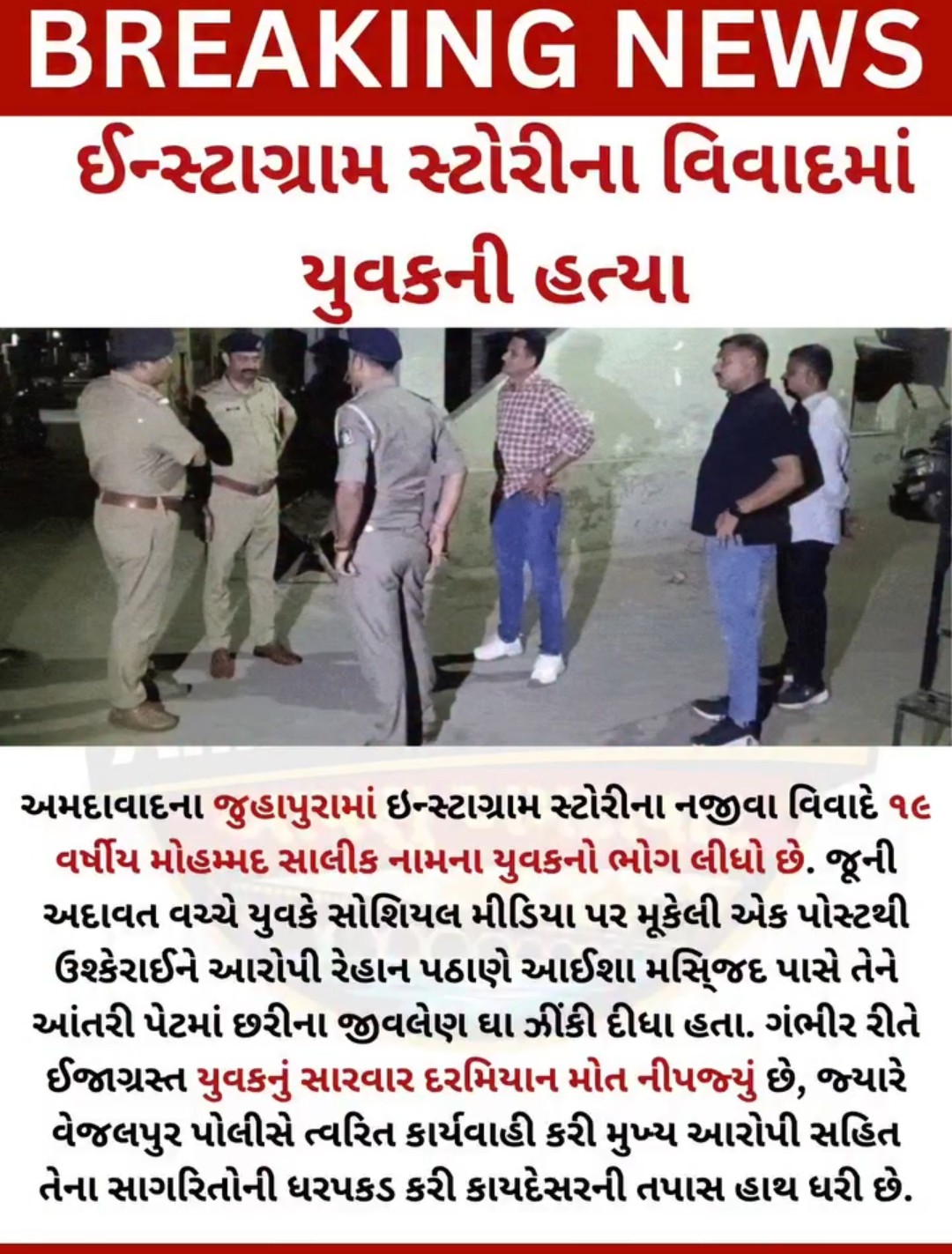 अहमदाबाद जुहापुरा मे इन्स्टाग्राम स्टोरी के कारण हत्या,
