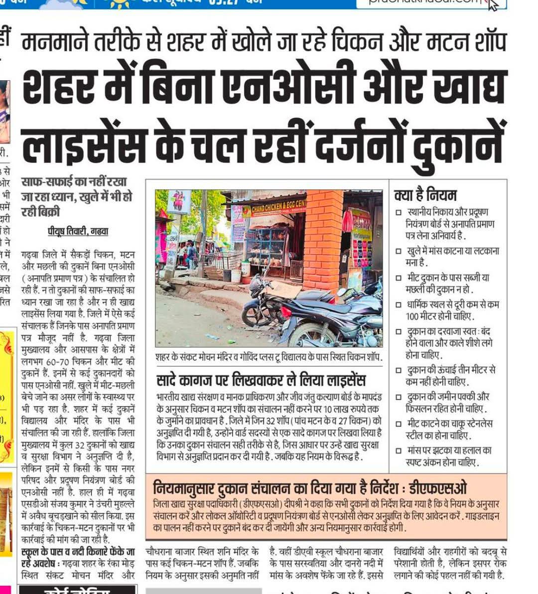 गढ़वा: बिना एनओसी और खाद्य लाइसेंस के चल रहीं दर्जनों मीट दुकानें, नियमों की उड़ रही धज्जियां