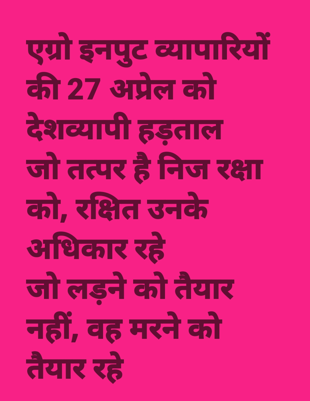 एग्री इनपुट डीलर एसोसिएशन ने किया भारत बंद का आव्हान