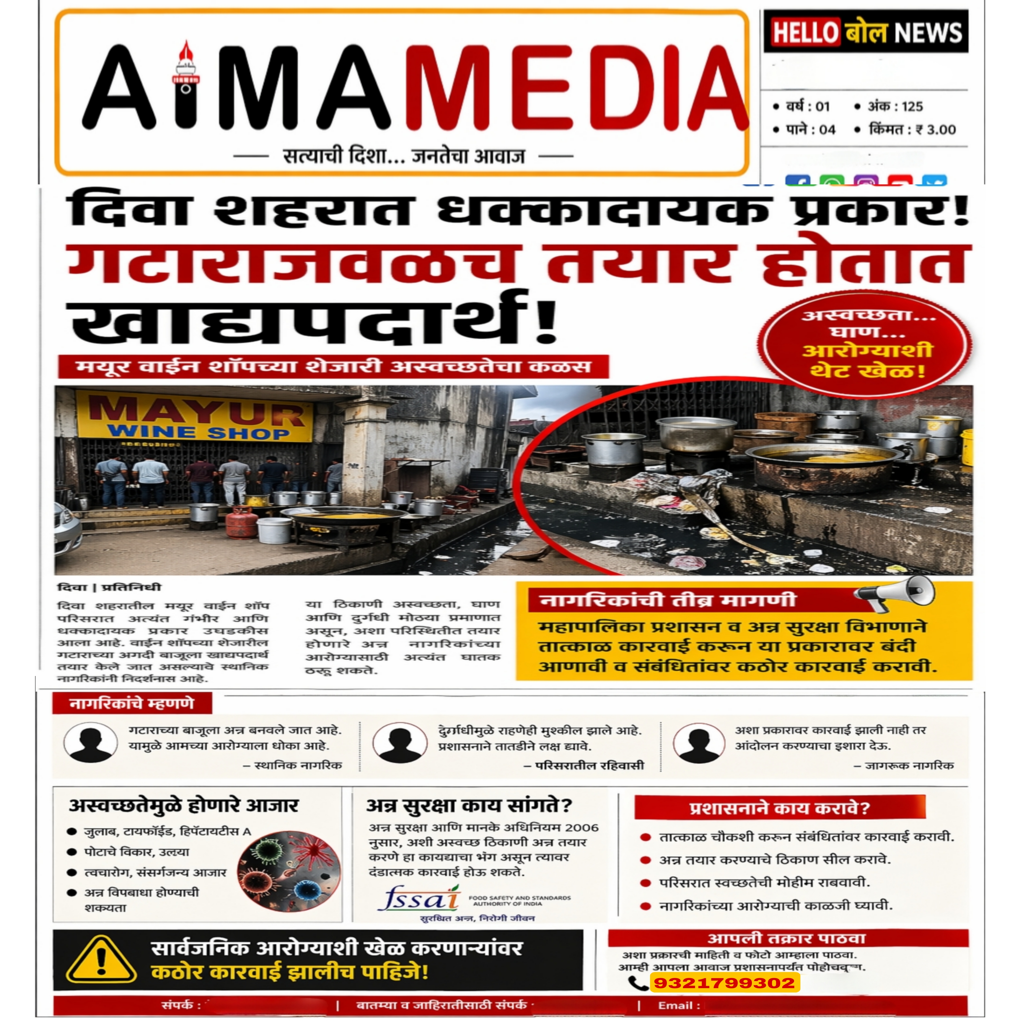 рдорд╣рд╛рдкрд╛рд▓рд┐рдХрд╛ рдкреНрд░рд╢рд╛рд╕рди рд╡ рдЕрдиреНрди рд╕реБрд░рдХреНрд╖рд╛ рд╡рд┐рднрд╛рдЧрд╛рдиреЗ рддрд╛рддреНрдХрд╛рд│ рдХрд╛рд░рд╡рд╛рдИ рдХрд░реВрди рдпрд╛ рдкреНрд░рдХрд╛рд░рд╛рд╡рд░ рдмрдВрджреА рдЖрдгрд╛рд╡реА рд╡ рд╕рдВрдмрдВрдзрд┐рддрд╛рдВрд╡рд░ рдХрдареЛрд░ рдХрд╛рд░рд╡рд╛рдИ рдХрд░рд╛рд╡реА.