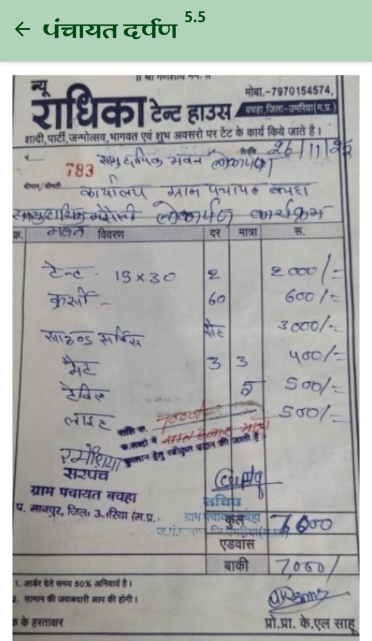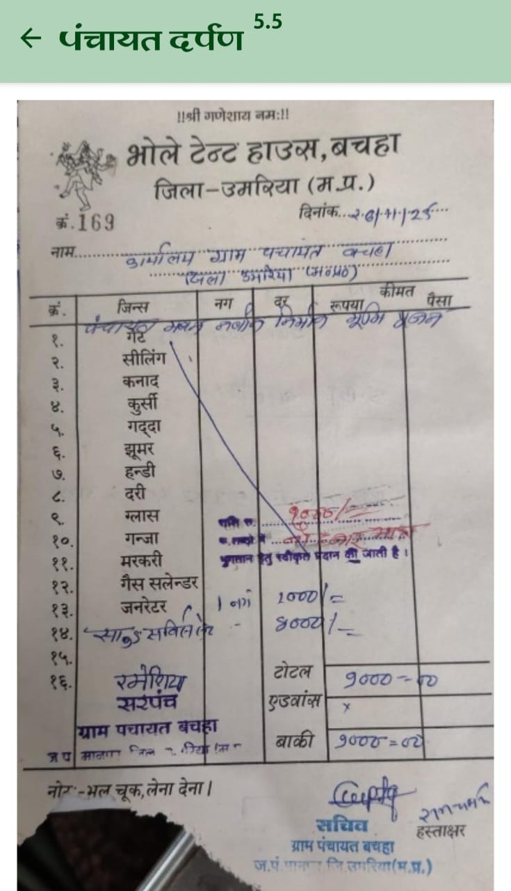 ग्राम पंचायत बचहा में भूमि पूजन के नाम पर 50 हजार से अधिक का भुगतान बिना जीएसटी के बिलों में अपने परिवार के भाई के नाम पर टेंट पर पैसा आहरण किए गए है