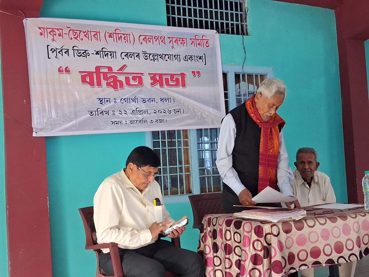सैखोवाघाट :- 22 अप्रैल, 2026, बुधवार को धौला के ‘गोरखा भवन’ में ‘माकुम–सैखोवा (सदिया) रेलपथ सुरक्षा समिति’ द्वारा क्षेत्र के विभिन्न दलों एवं संगठनों को लेकर एक विस्तारित बैठक आयोजित की गई।