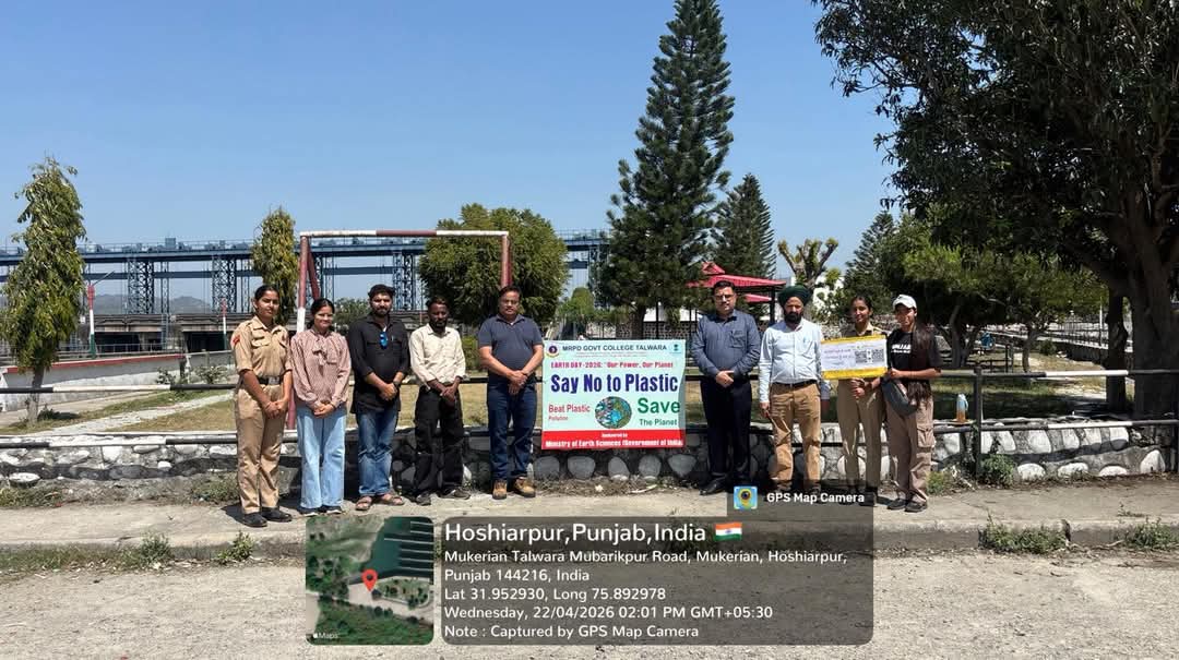 तलवाड़ा-होशियापुर, 23 अप्रैल ( अर्श ) : महंत राम प्रकाश दास राजकीय महाविद्यालय, तलवाड़ा में “हमारी शक्ति, हमारा ग्रह” विषय के अंतर्गत पृथ्वी विज्ञान मंत्रालय, भारत सरकार द्वारा स्पॉन्सर एवं प्रिंसिपल डॉ. राजीव खोसला के नेतृत्व और कोऑर्डिनेटर प्रो. प्रीति चौधरी की देख-रेख में पृथ्वी दिवस 2026 बड़े उत्साह और जागरूकता के साथ मनाया गया।