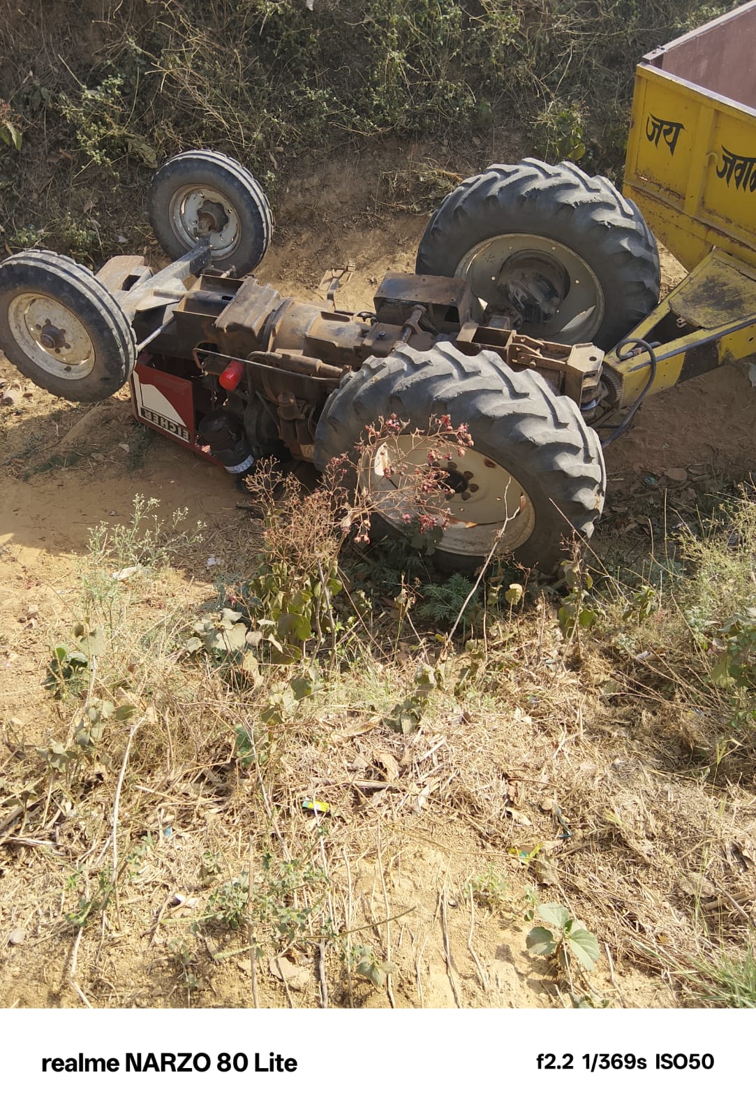 बताया जा रहा है कि आयशर ट्रैक्टर ईंट गिराकर वापस लौट रहा था और ढलान पर रफ्तार नियंत्रित न हो पाने के कारण हादसा हुआ। इस दौरान चालक (काल्पनिक नाम अशोक), निवासी ग्राम सेमरा, गंभीर रूप से घायल हो गया।