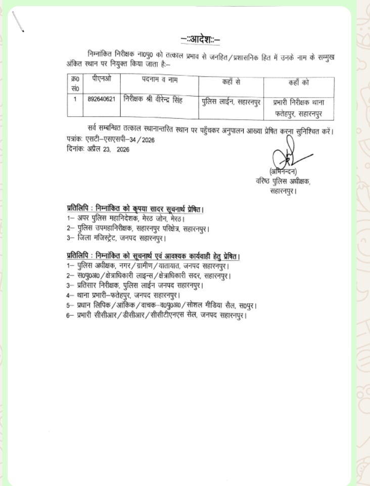ЁЯСд Virendra Singh рдХреА рддреИрдирд╛рддреА рдХрд░ рджреА рдЧрдИ рд╣реИред