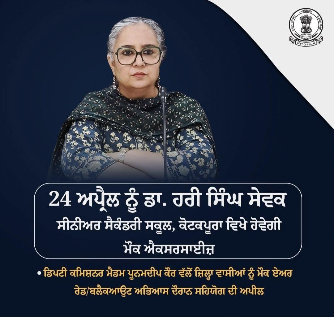 24 ਅਪ੍ਰੈਲ ਨੂੰ ਡਾਕਟਰ ਹਰੀ ਸਿੰਘ ਸੇਵਕ ਸੀਨੀਅਰ ਸੈਕੰਡਰੀ ਸਕੂਲ ਕੋਟਕਪੂਰਾ ਵਿਖੇ ਹੋਵੇਗੀ ਮੌਕ ਐਕਸਰਸਾਈਜ਼