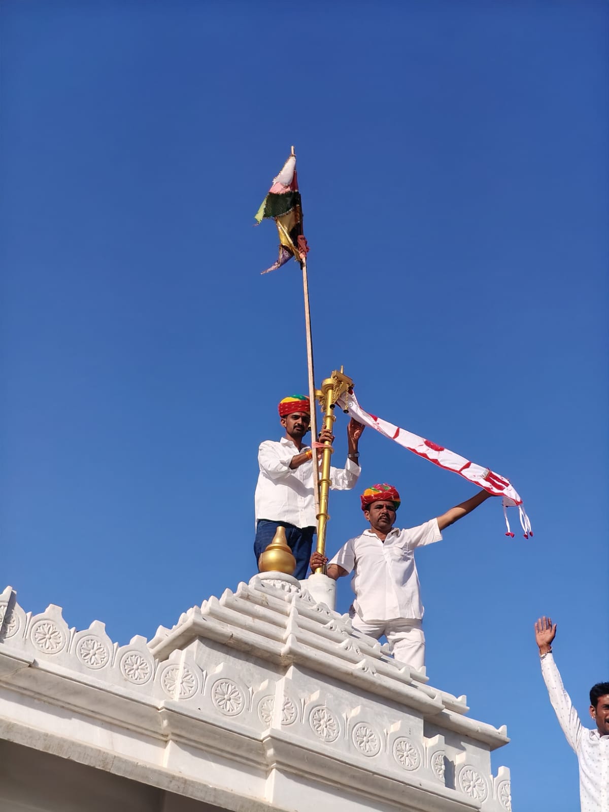 कोलर में रामदेव जी मंदिर की प्रथम वर्षगांठ पर ध्वजा चढ़ाई गई