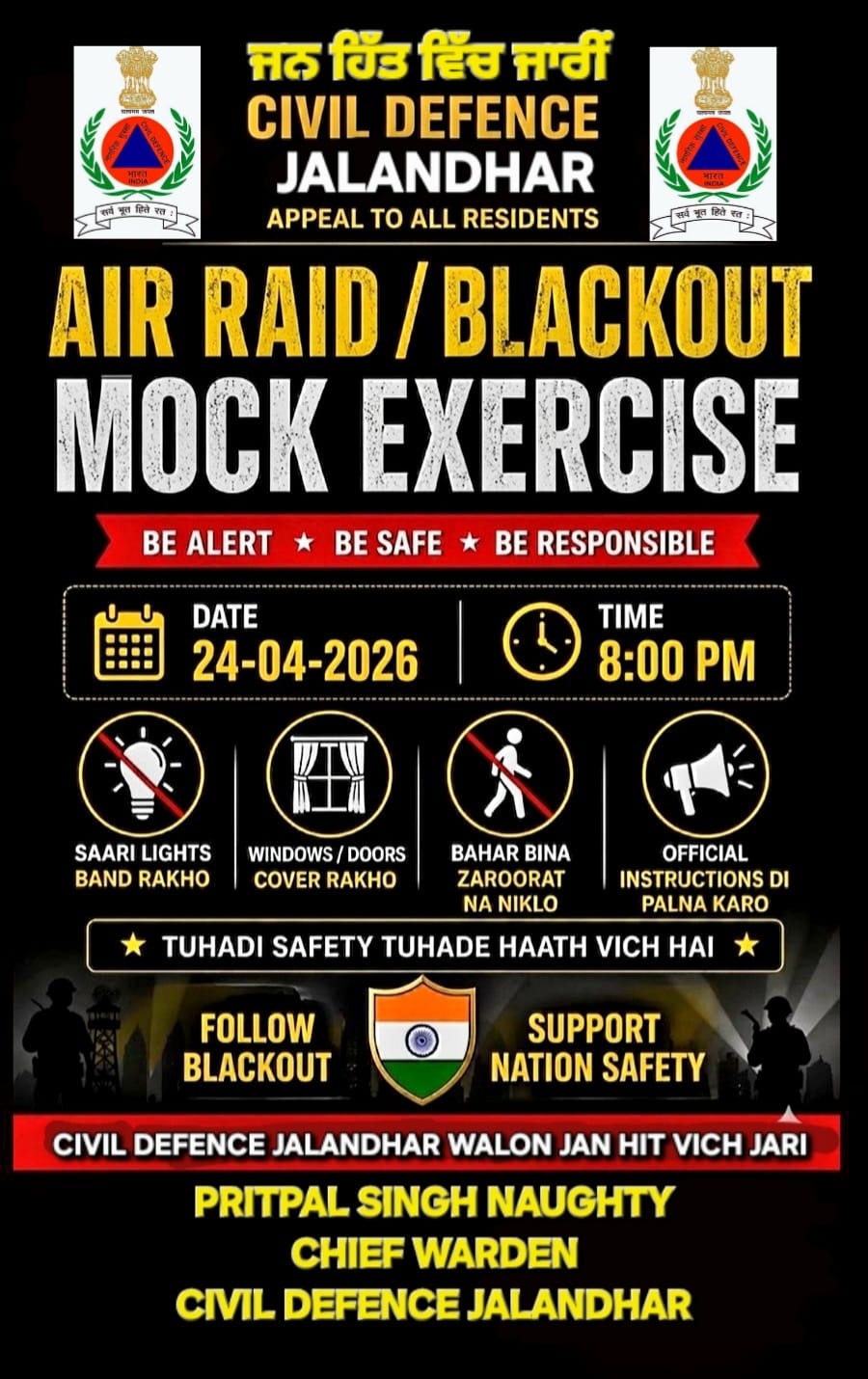 Jalandhar vic Kal sham 24april nu hon ja reha blackout