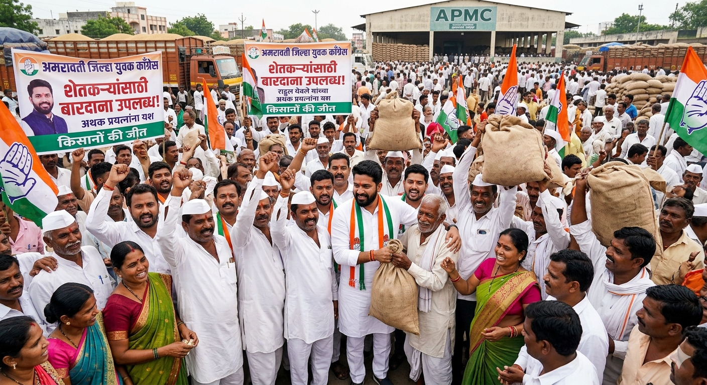 जिले में फसल खरीदी के समय बारदाने की कमी के कारण किसानों को अपनी उपज बेचने में भारी दिक्कतों का सामना करना पड़ रहा था। इस गंभीर स्थिति को देखते हुए अमरावती जिला युवा कांग्रेस के अध्यक्ष राहुल येवले ने तुरंत मोर्चा संभाला। उन्होंने प्रशासन के सामने किसानों की इस समस्या को प्रमुखता से उठाया और बारदाना उपलब्ध कराने के लिए लगातार दबाव बनाया। राहुल येवले के इन्हीं अथक प्रयासों का नतीजा है कि आज जिले के किसानों के लिए बारदाने की आपूर्ति सुचारू रूप से शुरू हो गई है।
