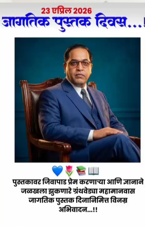 पुस्तकावर जिवापाड प्रेम करणाऱ्या आणि ज्ञानाने काळजाला झुकणारे ग्रंथ वेड्या महामानवास जागतिक पुस्तक दिनानिमित्त विनम्र अभिवादन...!
