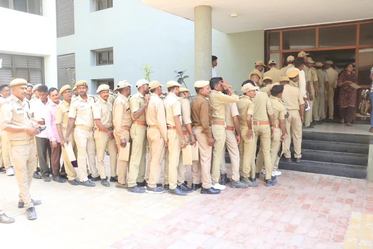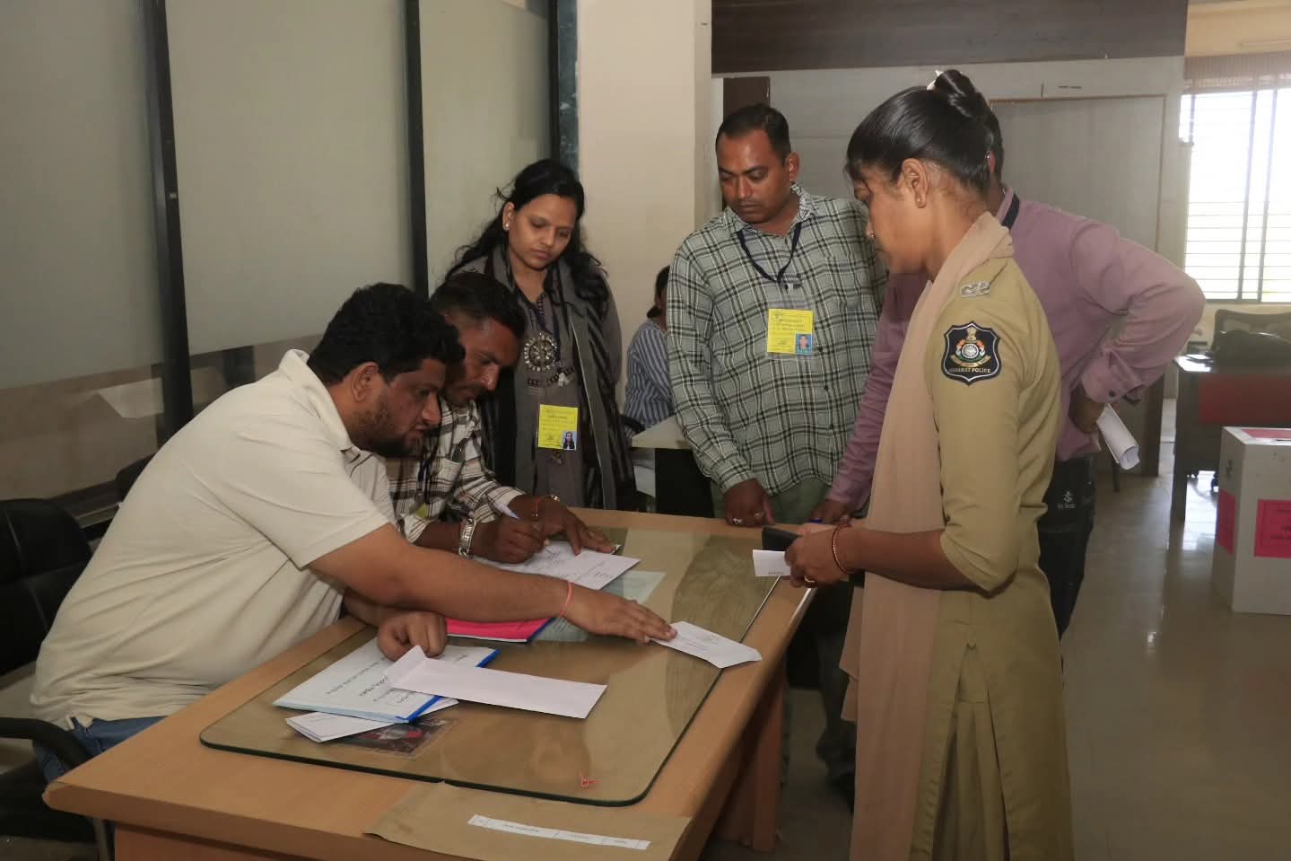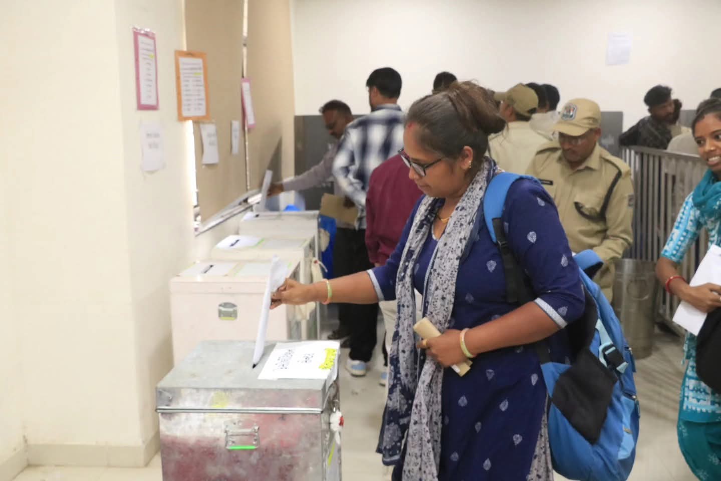 ઉત્સાહપૂર્વક મતાધિકારનો ઉપયોગ કરતા પોલીસ જવાનો