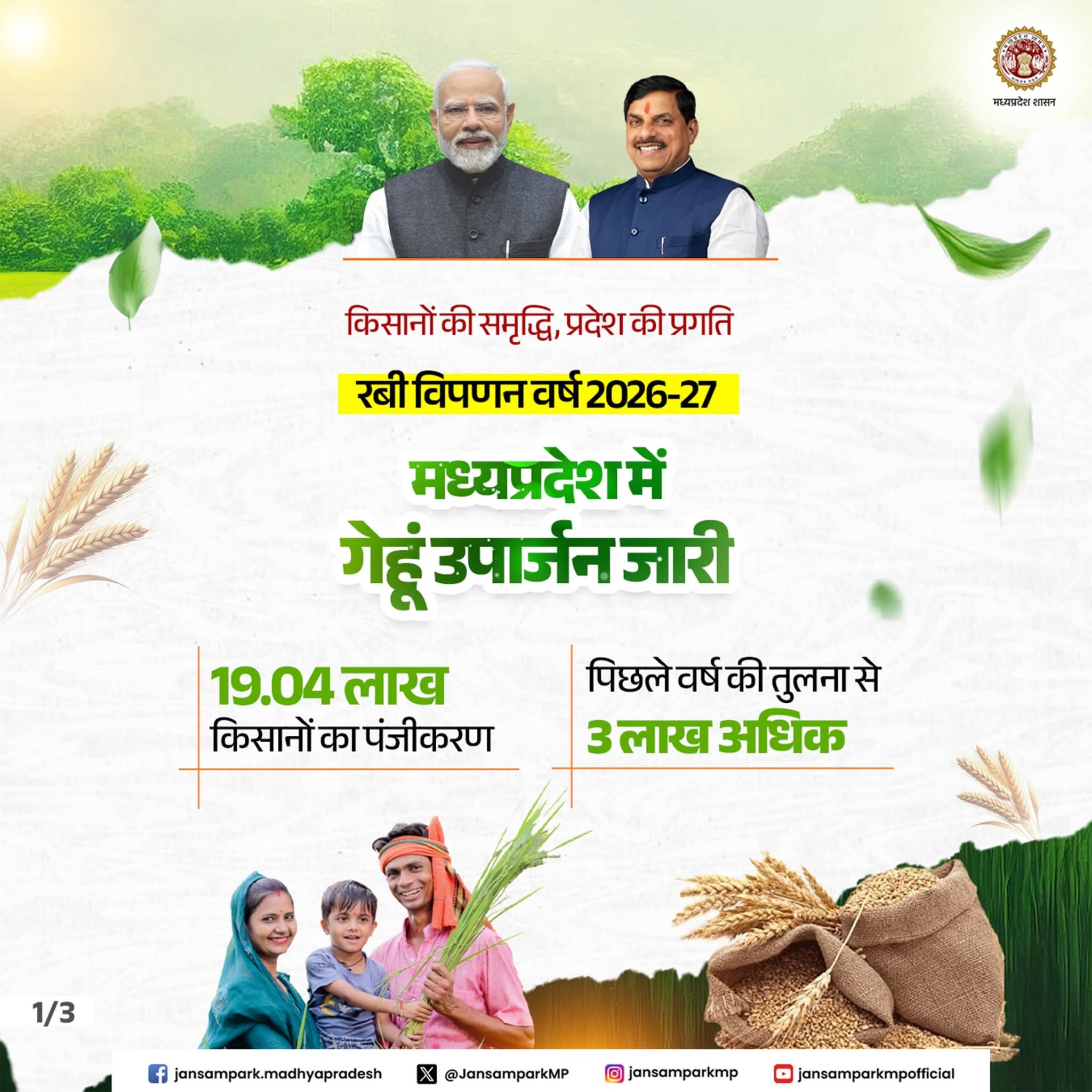 किसानों की समृद्धि प्रदेश की प्रगति
