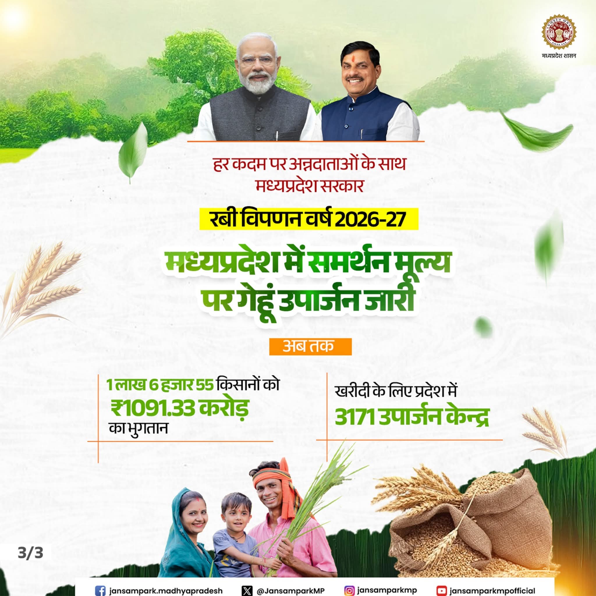 ➡️1 लाख 6 हजार 55 किसानों को ₹1091.33 करोड़ का भुगतान