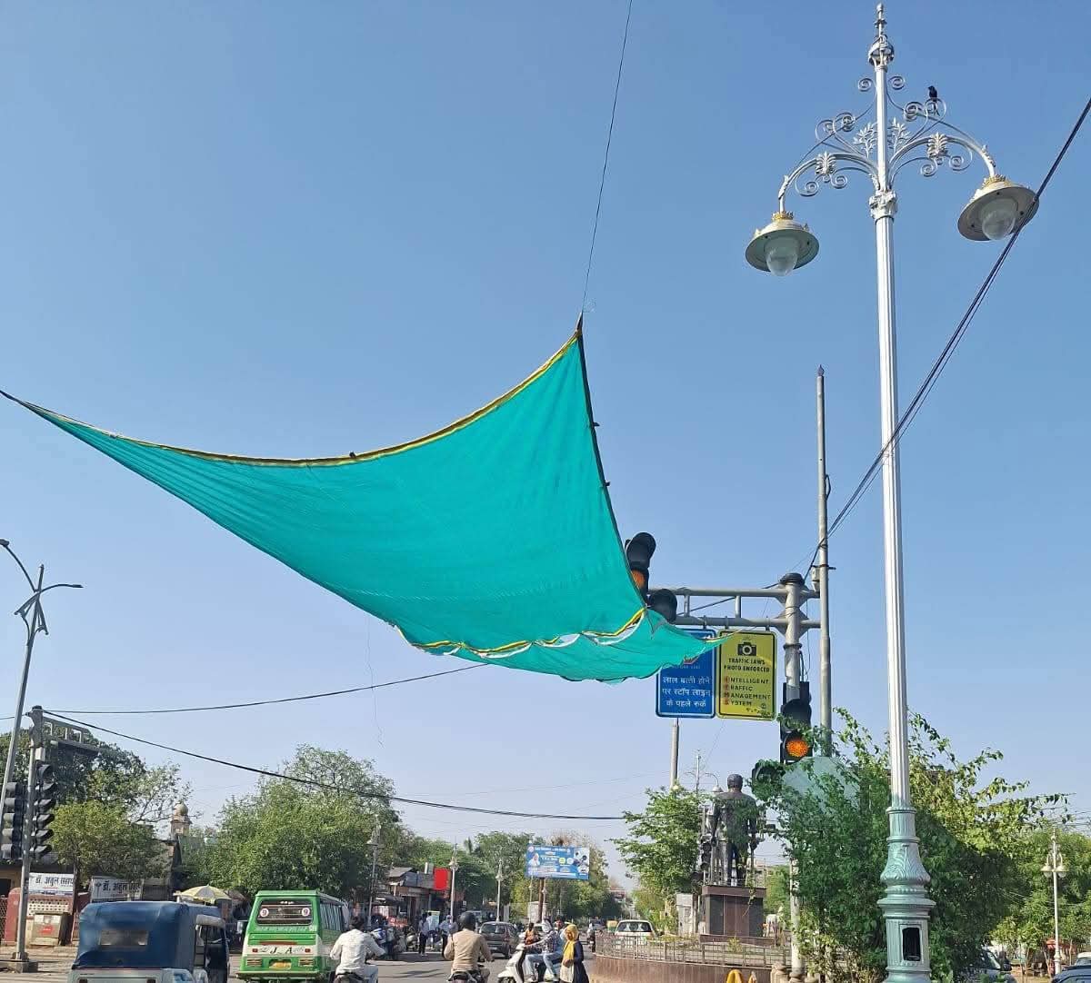 भीषण गर्मी के इस दौर में आमजन को राहत पहुंचाने के उद्देश्य से ग्वालियर नगर निगम द्वारा एक सराहनीय और जनहितकारी पहल की गई है। कलेक्टर श्रीमती रूचिका चौहान एवं नगर निगम आयुक्त श्री संघ प्रिय के निर्देशन में शहर के प्रमुख चौराहों पर ग्रीन नेट लगाकर राहगीरों और वाहन चालकों को कड़ी धूप से बचाने का प्रयास किया जा रहा है।