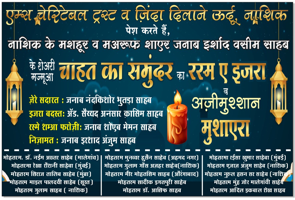 नाशिक में शायरी और अदब की शाम, एम्स के पांच साल पूरे होने पर खास आयोजन ناسک میں شاعری اور ادب کی شام، AIMS کے پانچ سال مکمل ہونے پر خصوصی تقریب