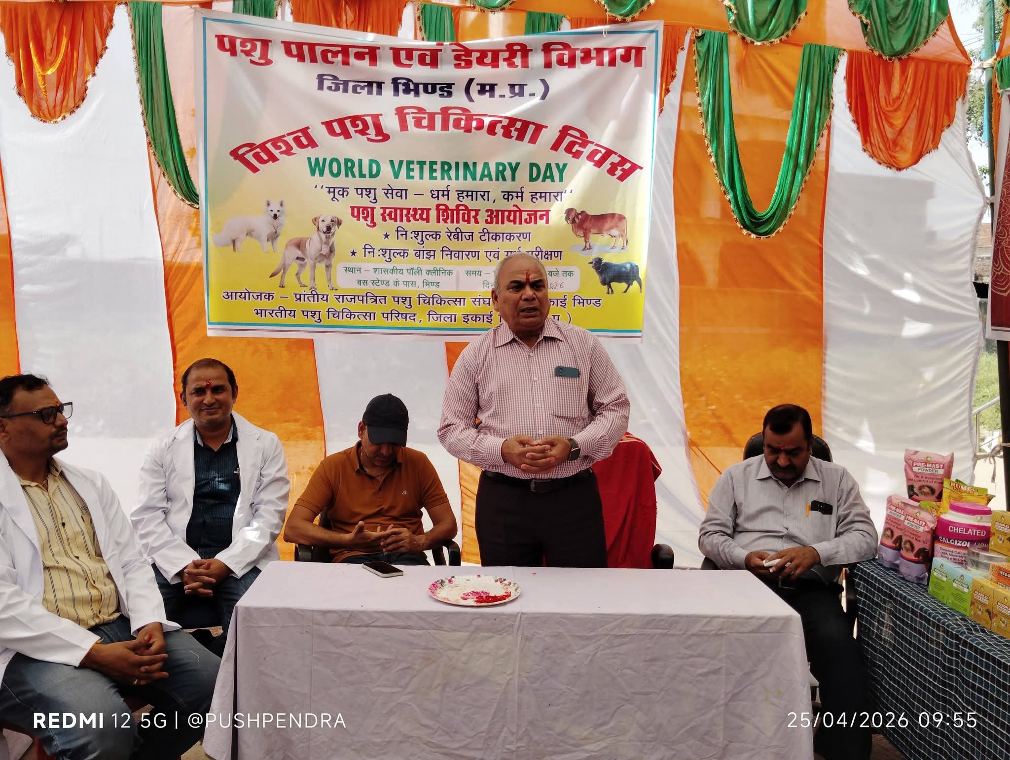 विश्व भर में अप्रैल माह का अंतिम शनिवार विश्व पशु चिकित्सक दिवस के रूप में मनाया जाता है दिनांक 25 अप्रैल 2026 को भी प्रांतीय राज पत्रित पशु चिकित्सक संघ एवं भारतीय पशु चिकित्सा परिषद जिला इकाई भिण्ड द्वारा इस दिवस के अवसर पर एक पशु स्वास्थ्य शिविर का आयोजन शासकीय पॉलीक्लीनिक पर किया गया है। शिविर में श्वान पशुओं में निःशुल्क रेबीज टीकाकरण तथा बडे पशुओं में गर्भ परीक्षण एवं बॉंझ निवारण कार्य किया गया। शिविर में 70 श्वान एवं बिल्ली में रेबीज टीकाकरण तथा 26 बड़े पशुओं में उपचार का कार्य किया गया।