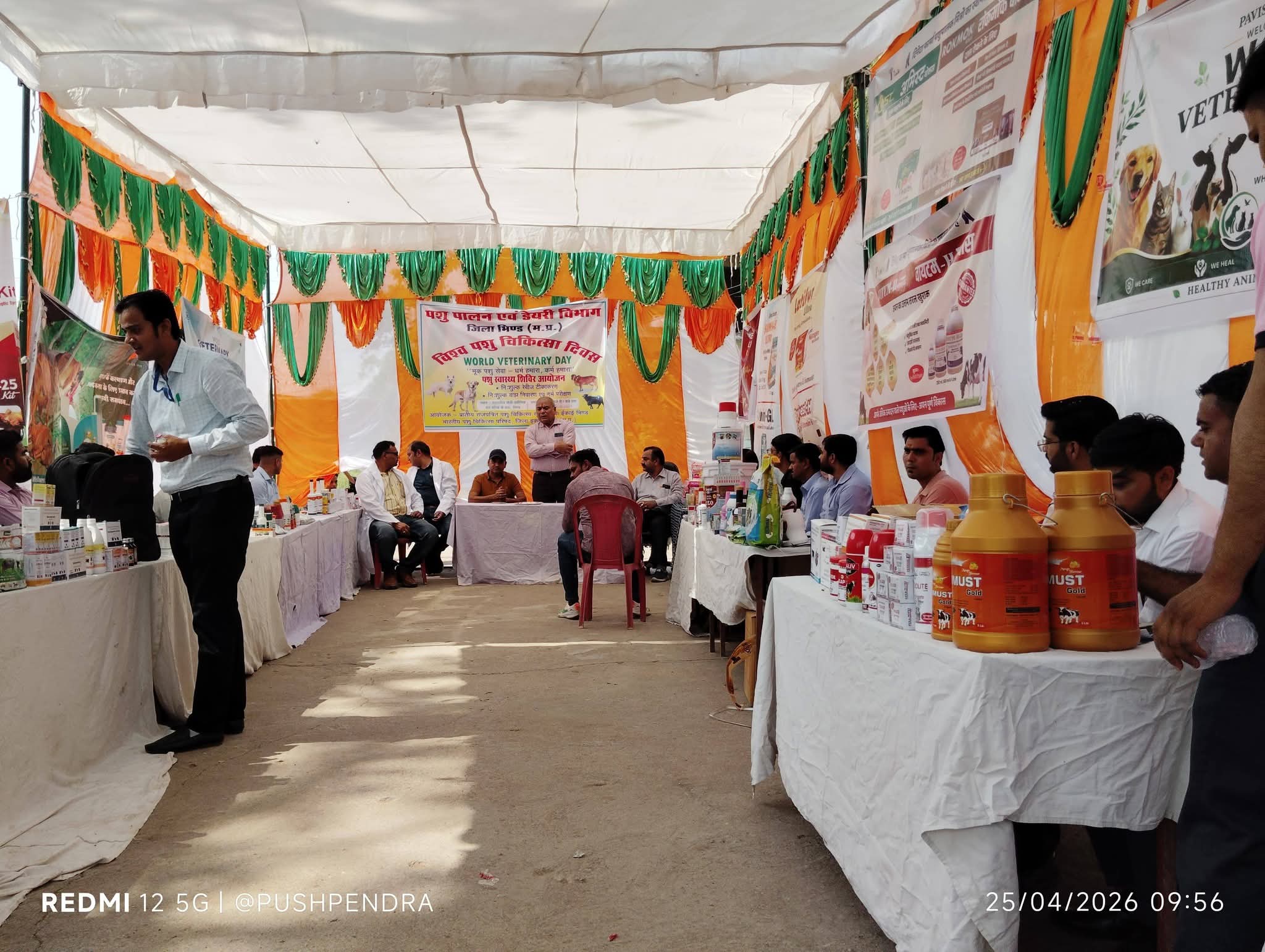 शिविर में विभिन्न फार्मा कम्पनियों ने अपनी औषधि का प्रदर्शन एवं वितरण किया गया। इसके अतिरिक्त उपसंचालक पशुपालन एवं डेयरी विभाग डॉ० एस.एस. राठौर ने विश्व पशु चिकित्सा दिवस के महत्व एवं इस वर्ष की थीम पर संबोधन दिया डॉ. शैलेन्द्र सिंह सिसोदिया द्वारा विभागीय योजना की जानकारी दी। शिविर आयोजन में शासकीय पॉलीक्लीनिक के प्रभारी डॉ० अतुल शर्मा, डॉ. मुकेश कटारे डॉ. कल्पना त्यागी, डॉ. राहुल तोमर, डॉ. रिषभ जैन, श्री पुष्पेन्द्र सिंह कुशवाह, श्री उमेश सिंह का सराहनीय सहयोग रहा सभी को विश्व पशु चिकित्सा दिवस की शुभकामनाऐं।