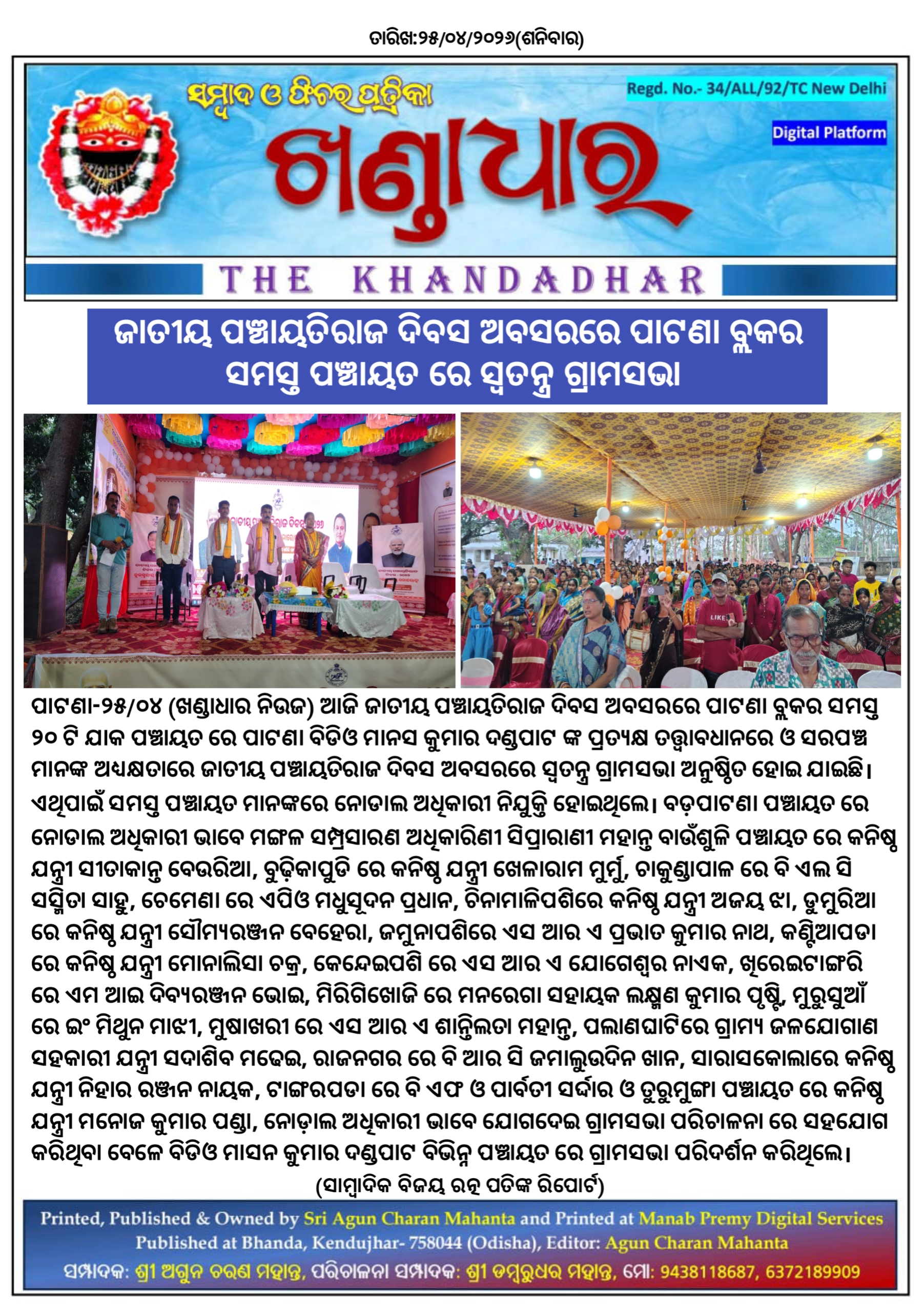 ଖଣ୍ଡାଧାର ନିଉଜ- ସାମ୍ବାଦିକ ବିଜୟ ରତ୍ନ ପତିଙ୍କ ରିପୋର୍ଟ।