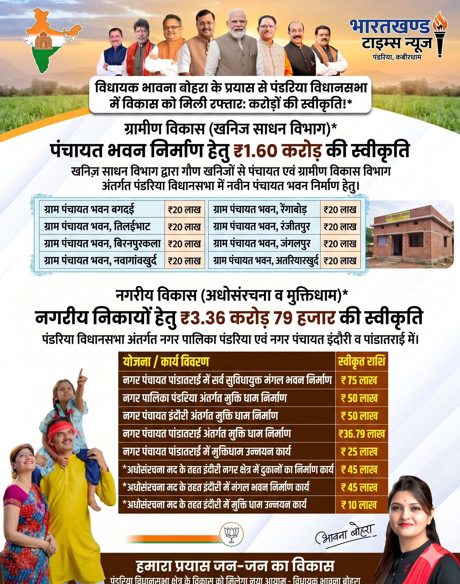 विधायक भावना बोहरा के प्रयास से पंडरिया विधानसभा में विकास को मिली रफ्तार: पंचायत भवनों व नगरीय अधोसंरचना के लिए करोड़ों की स्वीकृति