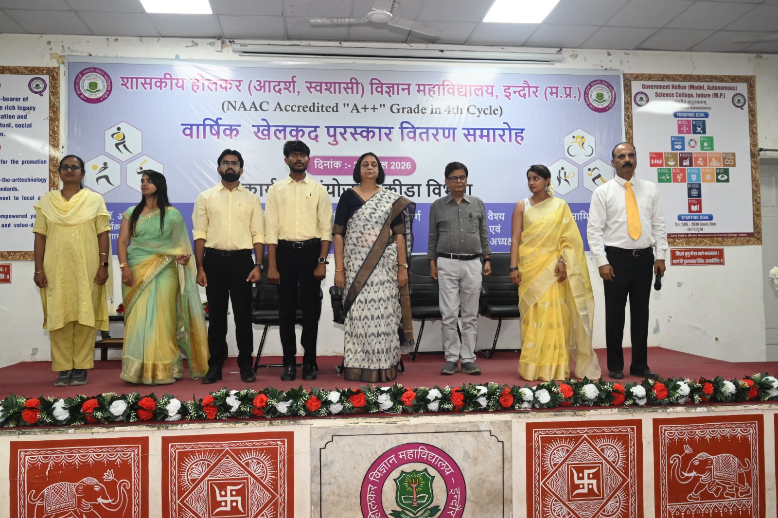 इंदौर। शासकीय होलकर विज्ञान महाविद्यालय, इंदौर में वार्षिक क्रीड़ा पुरस्कार वितरण समारोह उत्साह और गरिमामय वातावरण में आयोजित किया गया। कार्यक्रम में वर्षभर विभिन्न खेल प्रतियोगिताओं में उत्कृष्ट प्रदर्शन करने वाले खिलाड़ियों और टीमों को सम्मानित किया गया।
