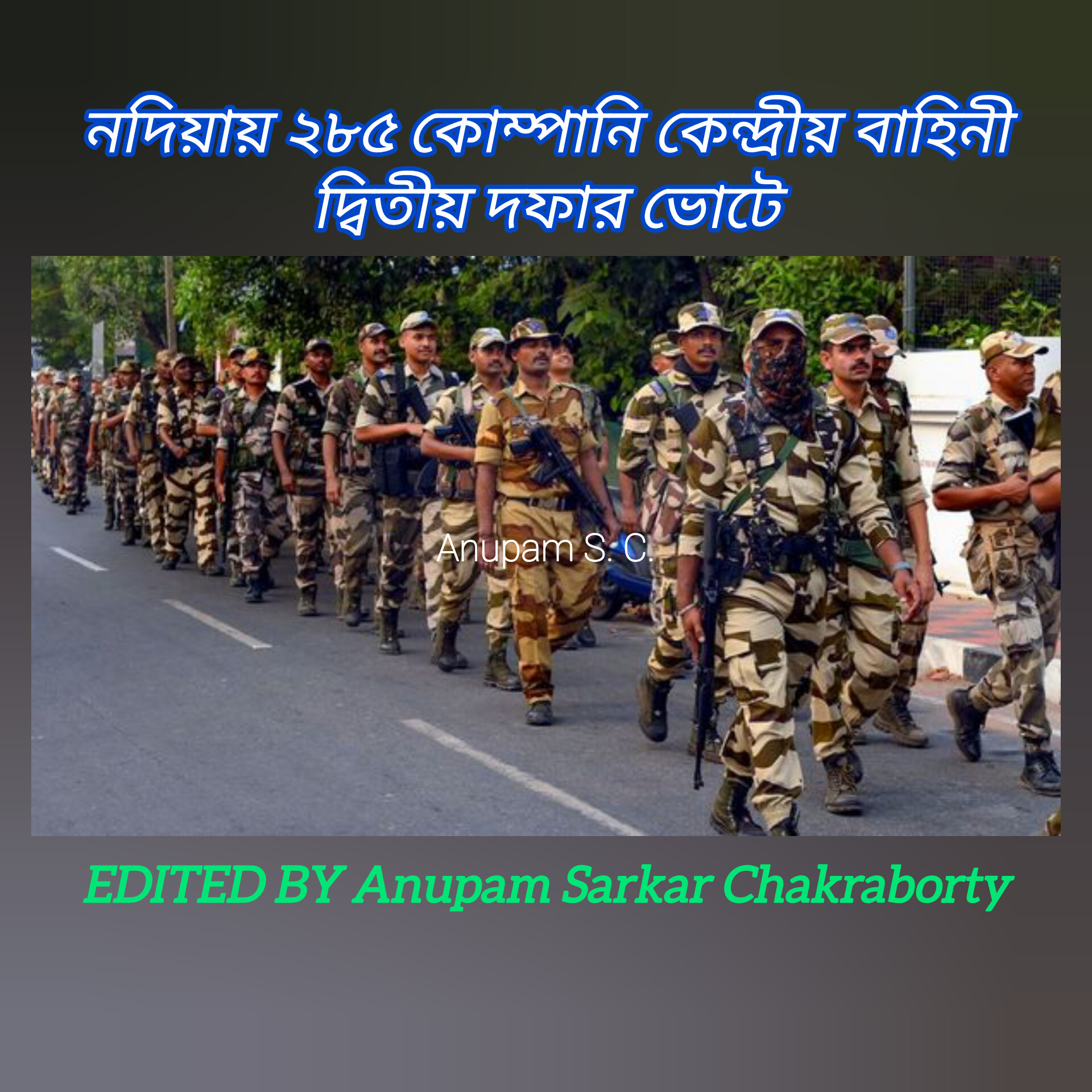 নদিয়া জেলায় প্রহরায় থাকবে 285 কোম্পানি কেন্দ্রীয় বাহিনী, দ্বিতীয় দফার ভোটে। আগামী 29/04/26 তারিখে পশ্চিমবঙ্গে, বিধানসভা নির্বাচন ২০২৬ এর দ্বিতীয় দফার ভোট। সমগ্র নদিয়া জেলায় ভোট হবে এই দিন।