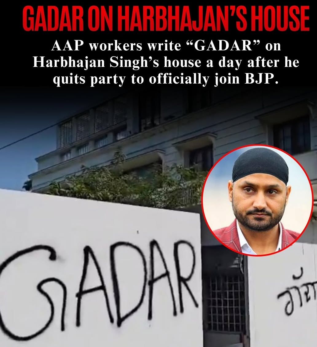 AAM admi party workers staged a protest outside the residence of Harbhajan singh., with reports starting that " Gaddar" was written on the wall. The protest was led by Mayor Vineet Dhir along with Jalandhar central halqa incharge Nitin Kohli. The incident has drawn attention amid rising political tensions , though further details regarding cause of the protest and official responses are awaited.