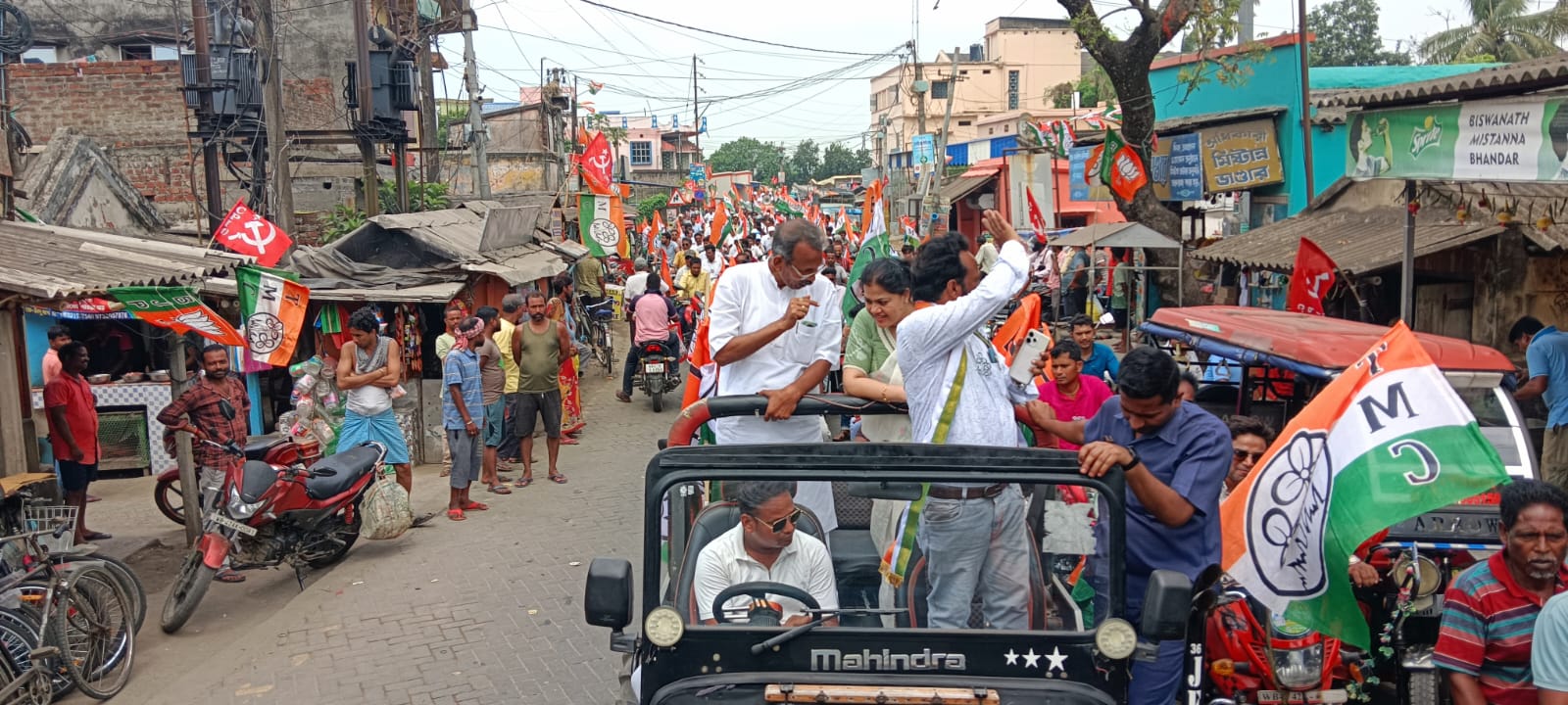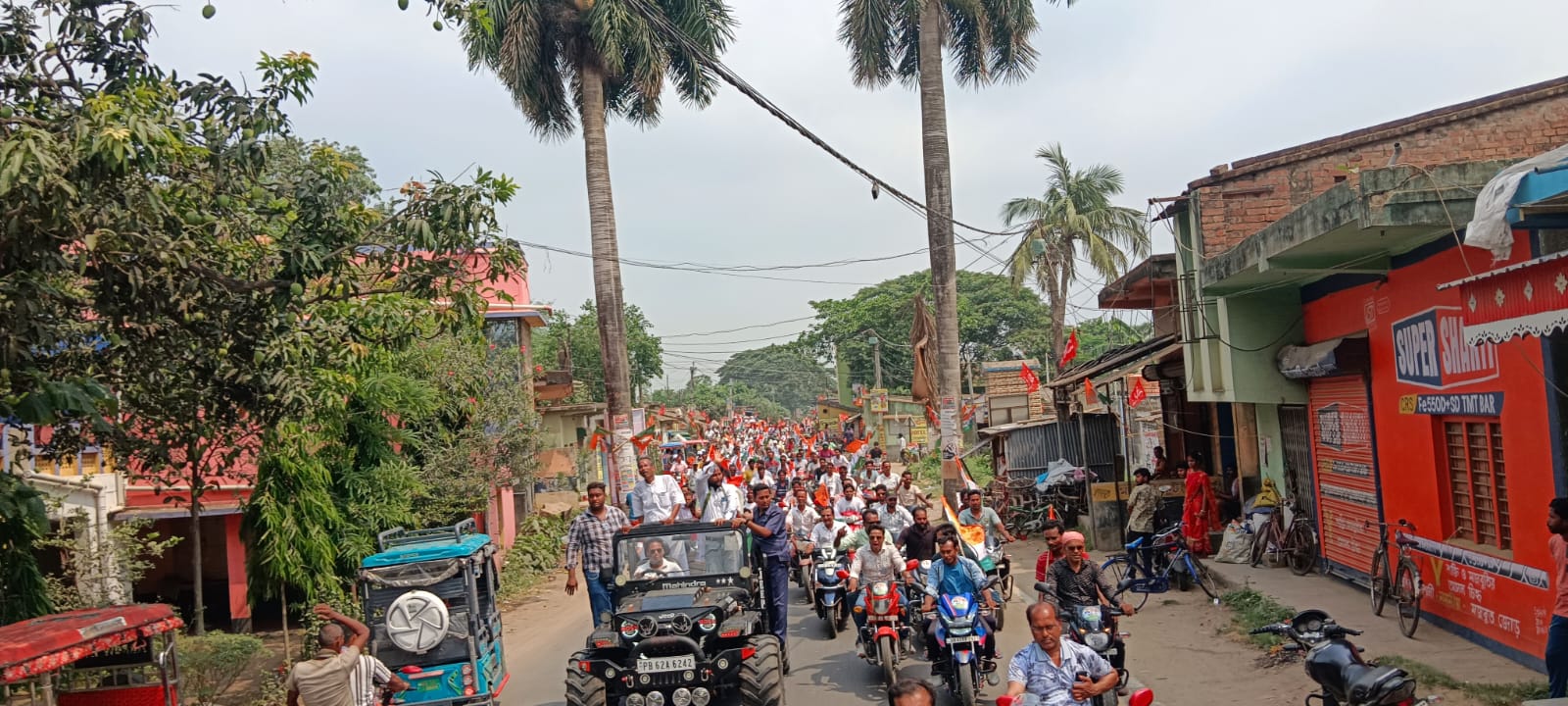 র্যালির নেতৃত্ব দেন তৃণমূল প্রার্থী ভুতনাথ মালিক। একটি খোলা গাড়িতে দাঁড়িয়ে তিনি সমর্থকদের উদ্দেশ্যে হাত নাড়েন এবং কখনও হাত জোড় করে প্রণাম জানান। তার সঙ্গে উপস্থিত ছিলেন দলের অন্যান্য নেতৃবৃন্দ, ব্লক সভাপতি ও সাংসদ।