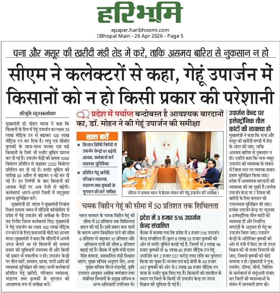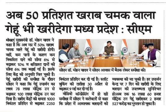 मुख्यमंत्री डॉ. मोहन यादव ने की गेहूं उपार्जन की समीक्षा