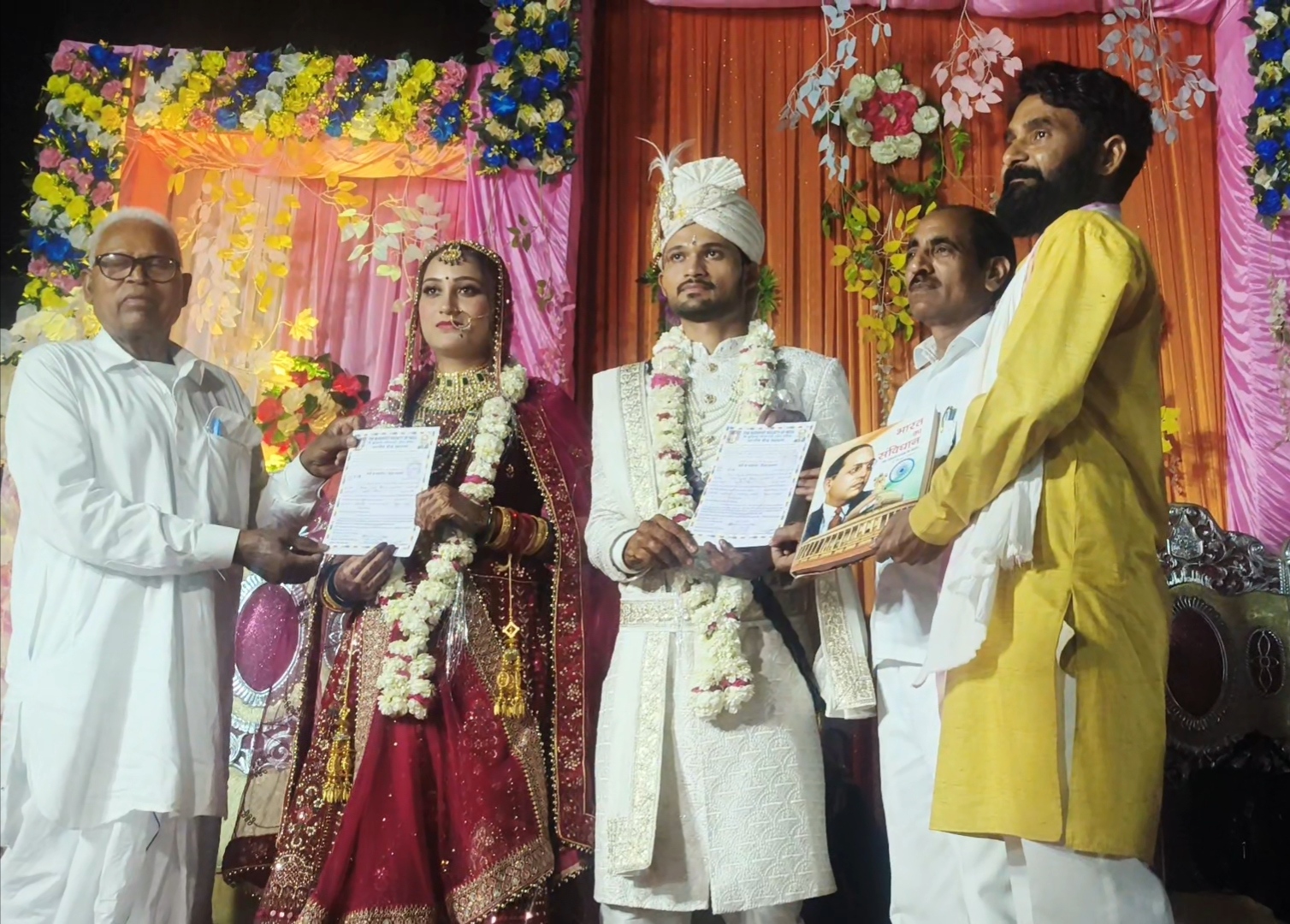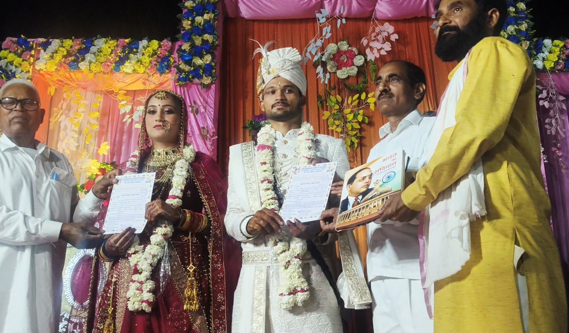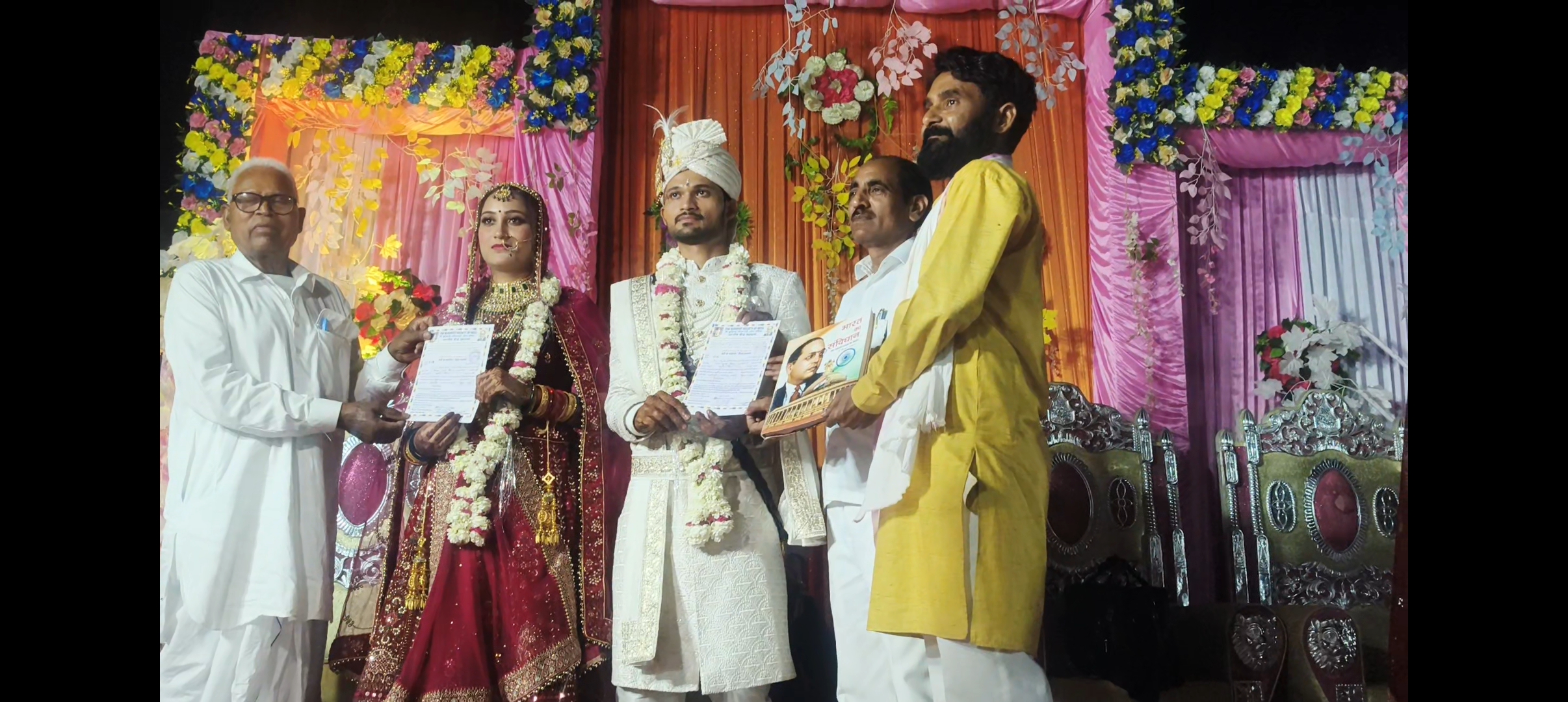 बहुजन समाज के लोगों द्वारा मनुवादी पाखंडवाद को ताक पर रख कर बौद्ध धर्म के अनुसार बाबा साहब भीमराव अंबेडकर व गौतम बुद्ध को तथा संविधान को साक्षी मानकर रचाई शादी,