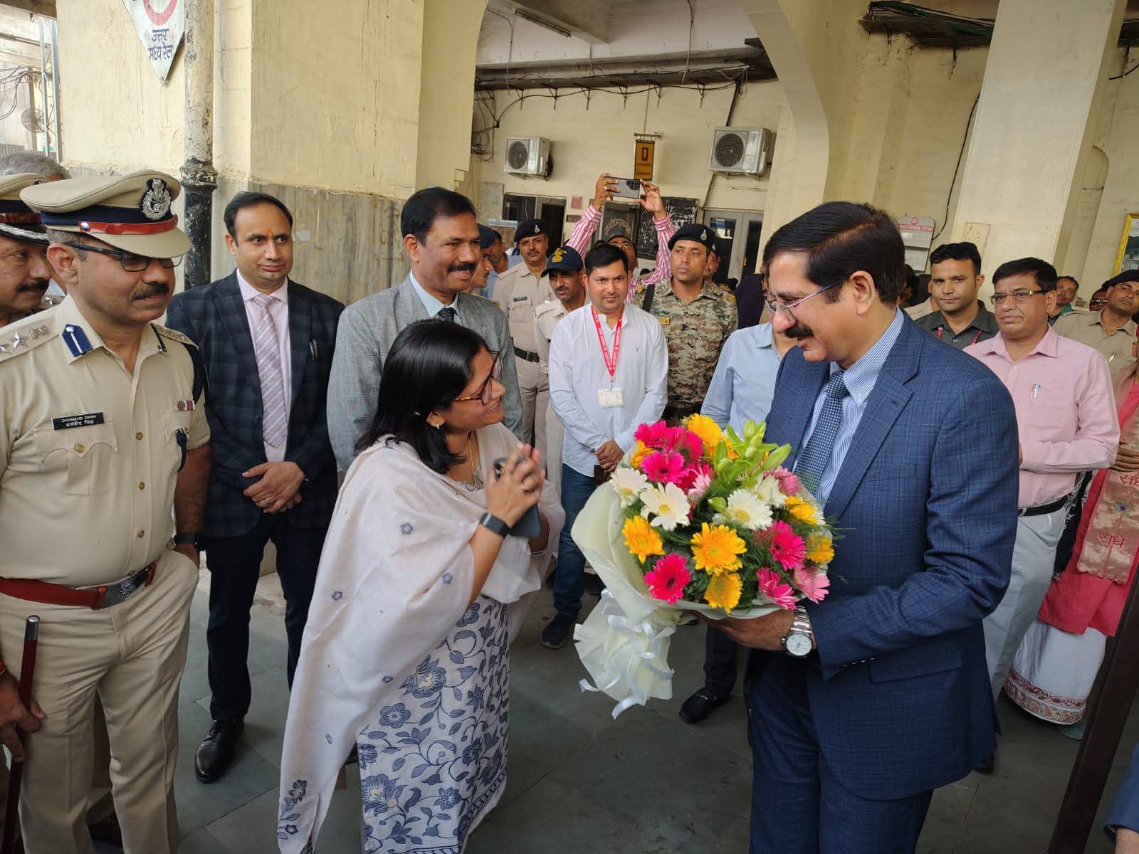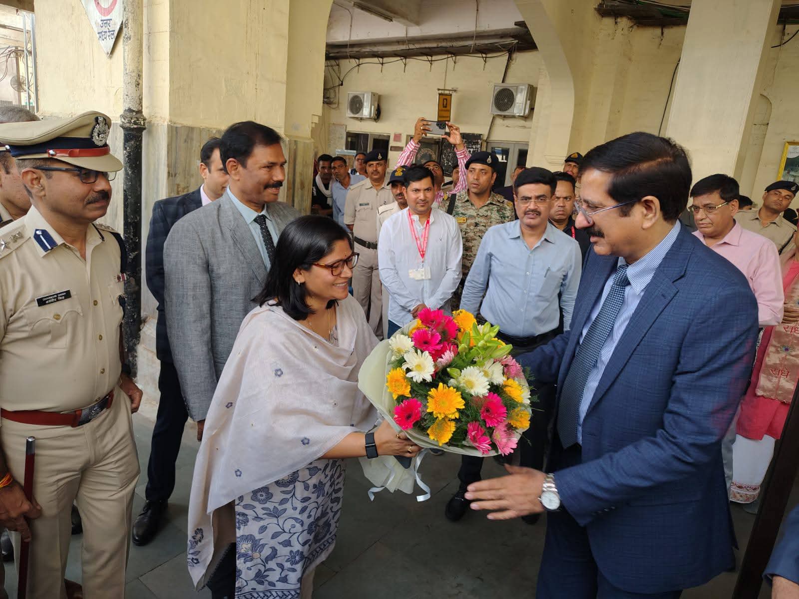 मध्यप्रदेश उच्च न्यायालय के मुख्य न्यायाधिपति व मध्यप्रदेष राज्य विधिक सेवा प्राधिकरण के मुख्य संरक्षक माननीय न्यायमूर्ति श्री संजीव सचदेवा का रेलवे स्टेशन पर कलेक्टर श्रीमती रूचिका चौहान ने गुलदस्ता भेंटकर आत्मीय स्वागत किया।