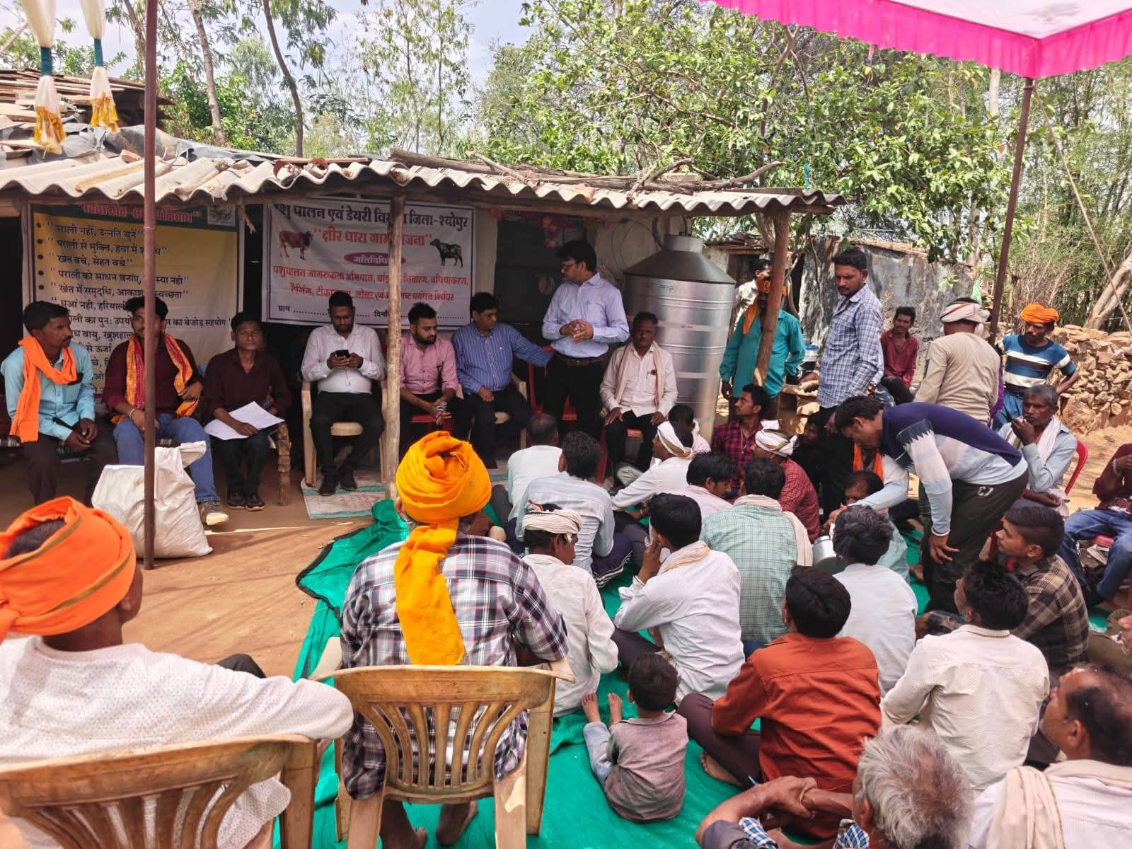 #श्योपुर-/ कलेक्टर सुश्री शीला दाहिमा के मार्गदर्शन में पशु पालन एवं डेयरी विभाग द्वारा कराहल विकासखण्ड के ग्राम हसनपुर में “क्षीर धारा ग्राम योजना” के तहत एक दिवसीय पशु चिकित्सा शिविर एवं संगोष्ठी का आयोजन किया गया। कार्यक्रम का मुख्य उद्देश्य ग्रामीण क्षेत्रों में पशुपालकों को वैज्ञानिक पशुपालन पद्धतियों से अवगत कराना, पशुओं के स्वास्थ्य की सुरक्षा सुनिश्चित करना तथा दुग्ध उत्पादन में वृद्धि कर उनकी आय को सुदृढ़ बनाना रहा।